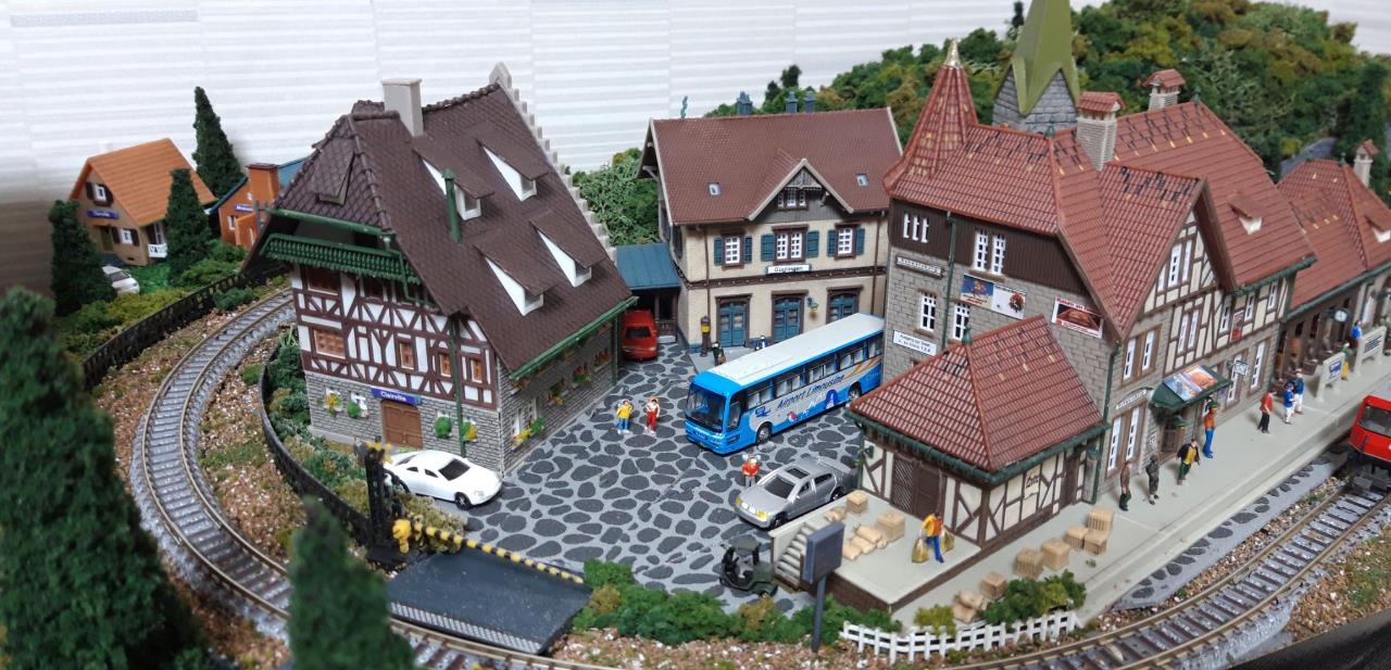 버스정거장과 기차역, 숙박집 및 기타 시골마을을 재현해 봤습니다.