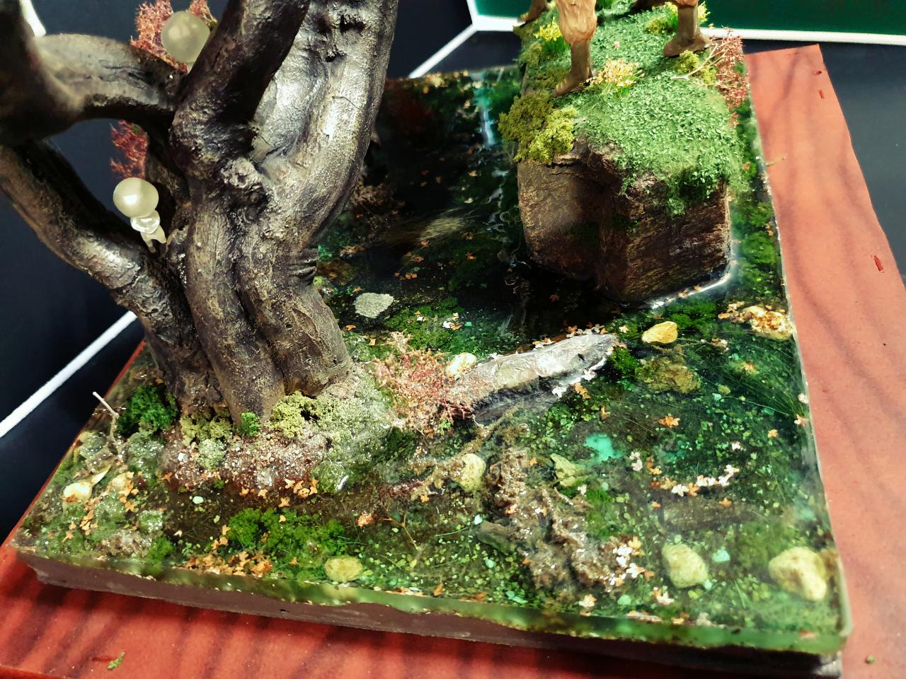 이번에 만든 디오라마는 에니메이션 원령공주 입니다 어쩌다 보니 작업 하게 됐는데요 물속 표현에 집중하여 만들어 보았습니다 베이스는 직접 나무를 잘라서 만들고 도색 하였습니다