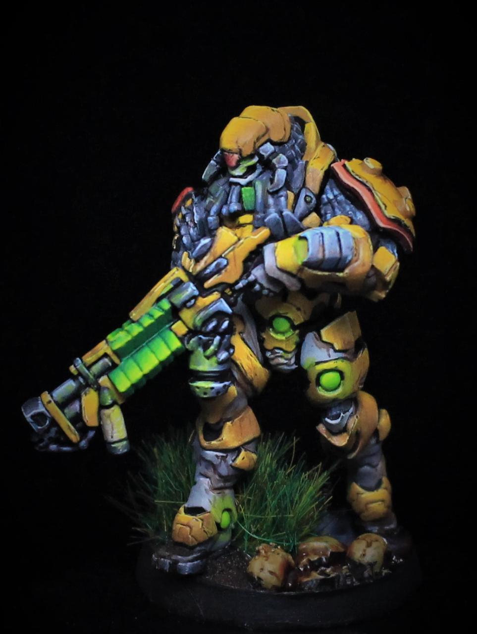 작례컬러는 노란바이저에 초록갑옷입니다만, 마구잡이로 칠해봤습니다. 느낌오는대로 칠하면 어떻게 될지 궁금했어요!
