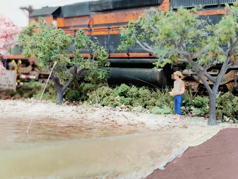 혼자 낚시중인 사람.봄을 알리는 벚꽃.