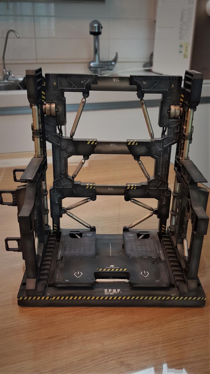 베이스는 MG급인 1/100스케일이 아니라 HG급 1/144스케일용으로 나온 시스템 베이스를 사용했는데, 워낙 크기가 크게 나와 1/100용으로도 활용가능했습니다. 그냥 올려놓기 허전해 GM 2.0에 들어있는 스탠딩 포즈의 파일럿에 노란 노몰슈트 복장으로 도색해 세워줬지만 별로 티가 나지 않는 것 같습니다.
