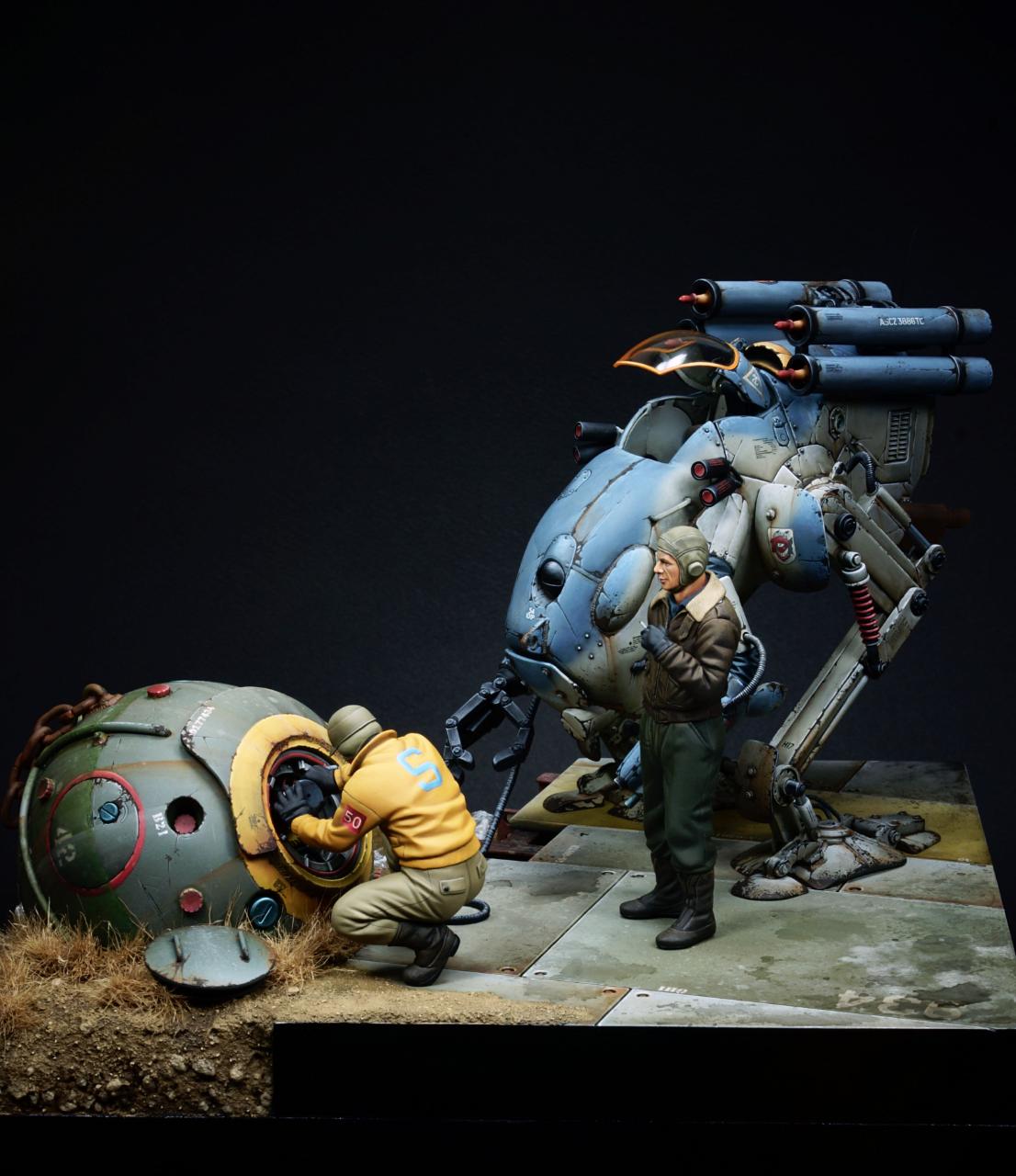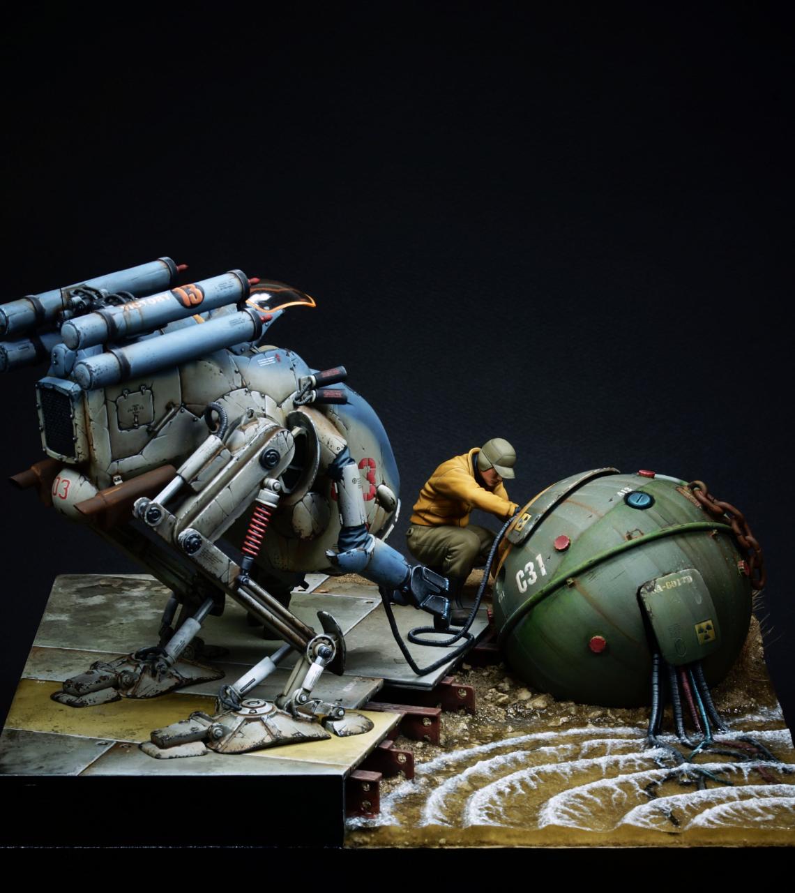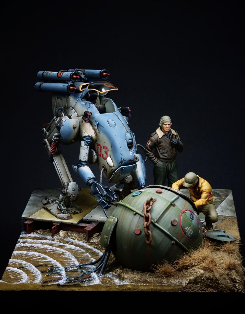 로봇과 기뢰는 자작이고 인형은 Hasegawa 피규어 세트입니다.