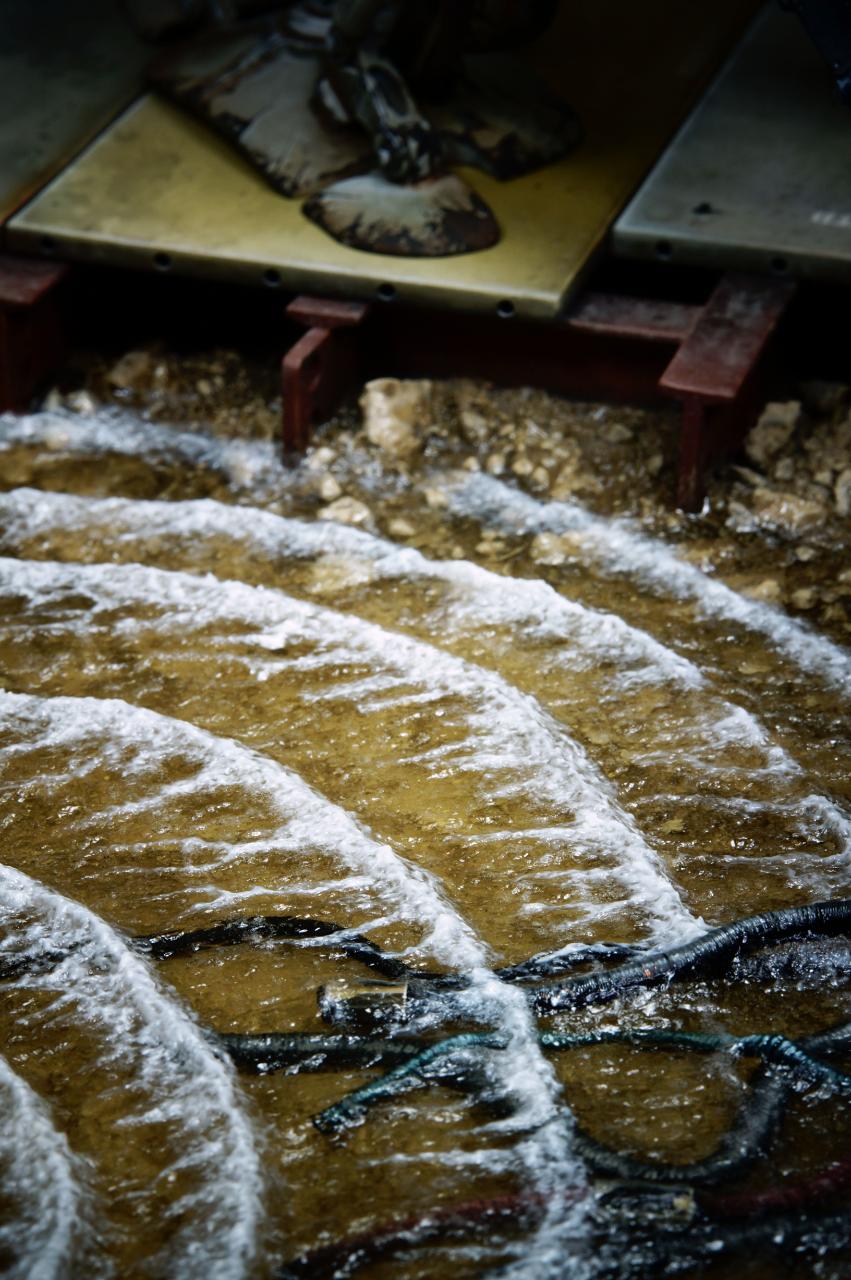 위치를 이탈해 떠밀려온 기뢰를 발견하고 해킹하기 위해 커넥팅을 시도하려고 분해하는 모습입니다.