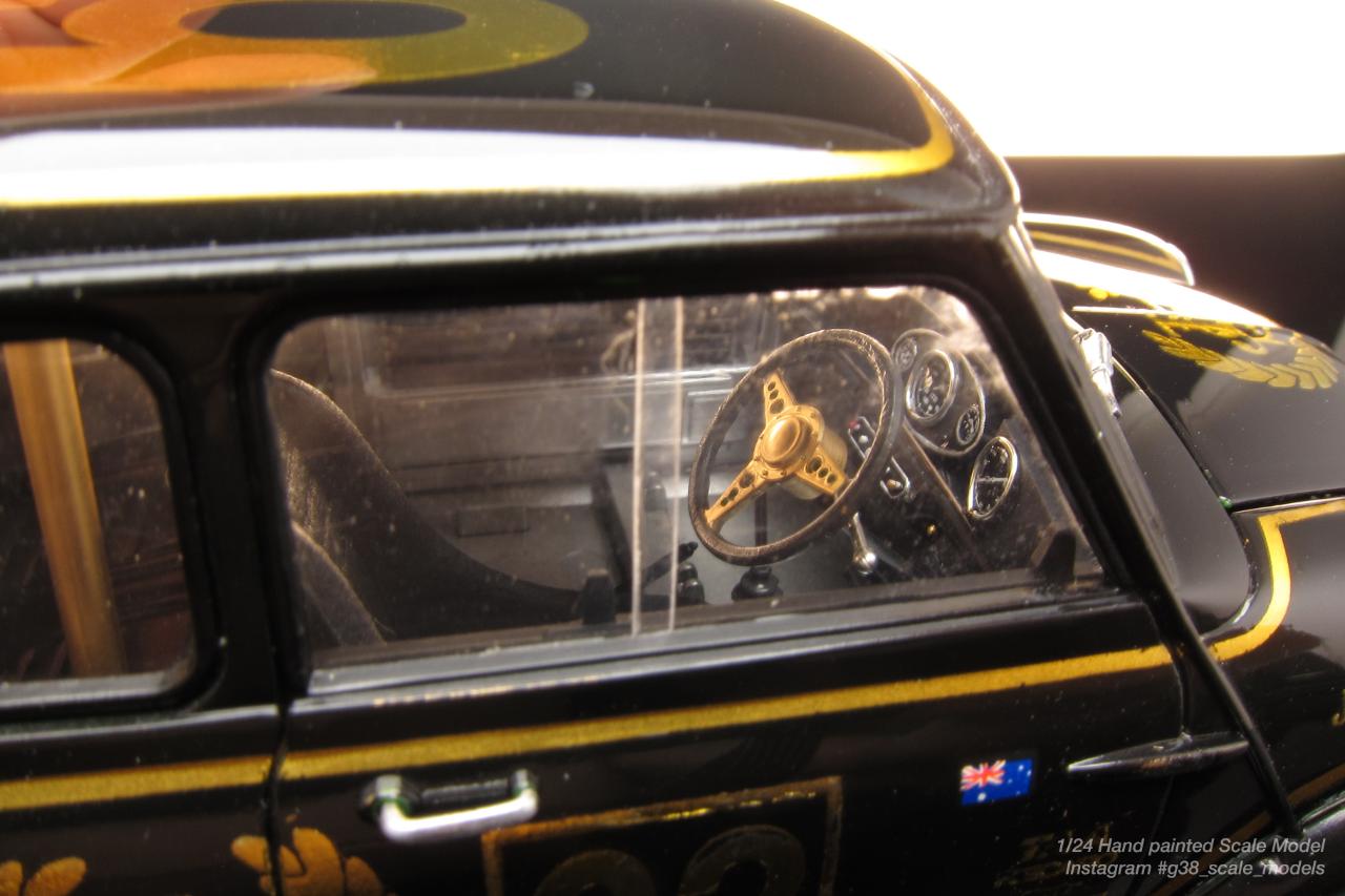 표면정리를 좀더 고운 사포질을 한다음 서페이서 없이 바로 금색도색, 스트라이프 마스킹해서 블랙 2회, 데칼링, 그리고 바로 클리어 2회로 마무리했습니다.
