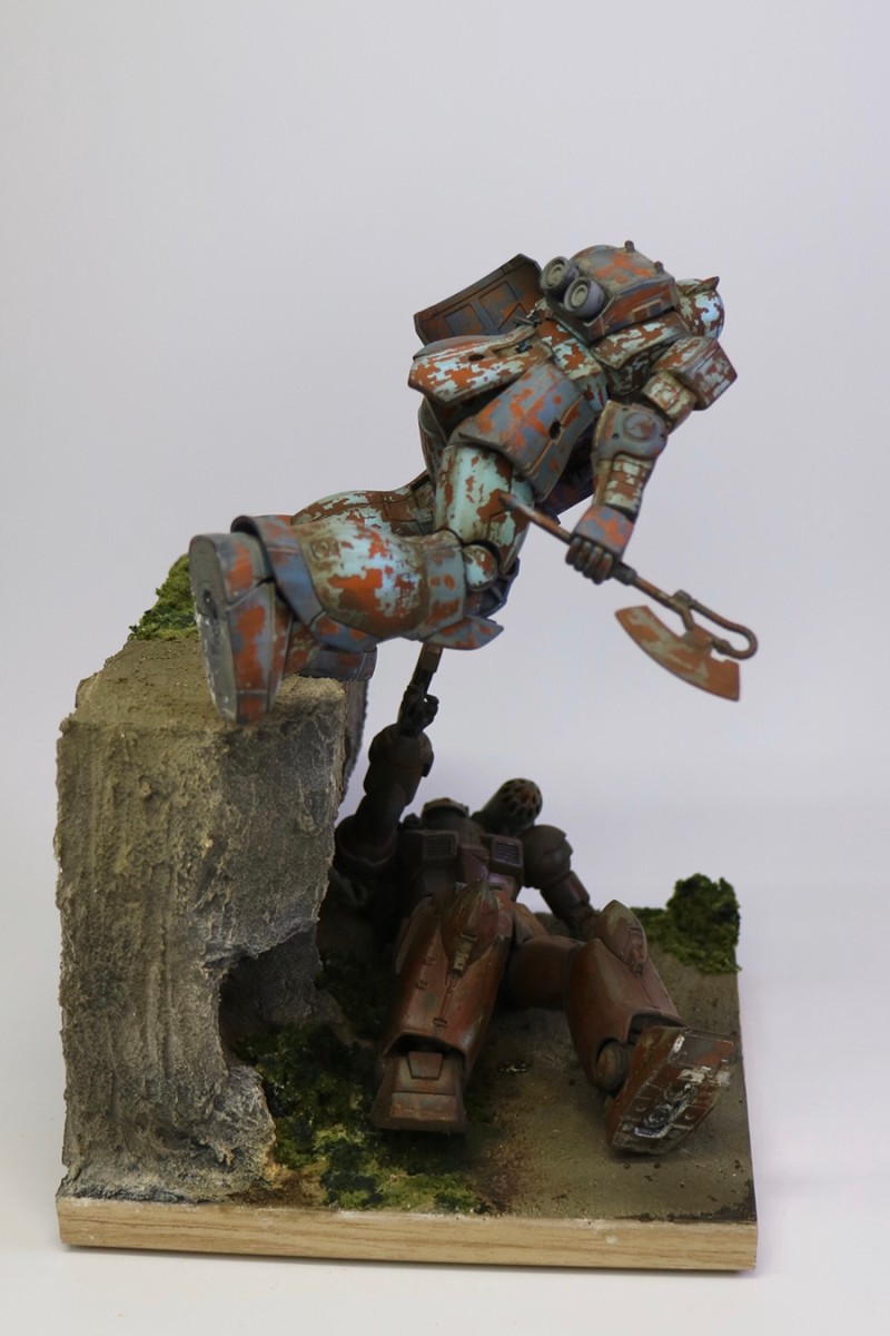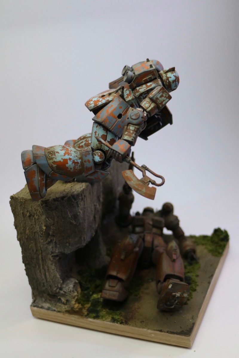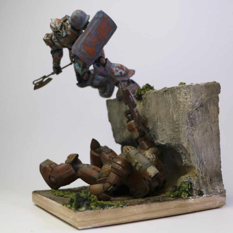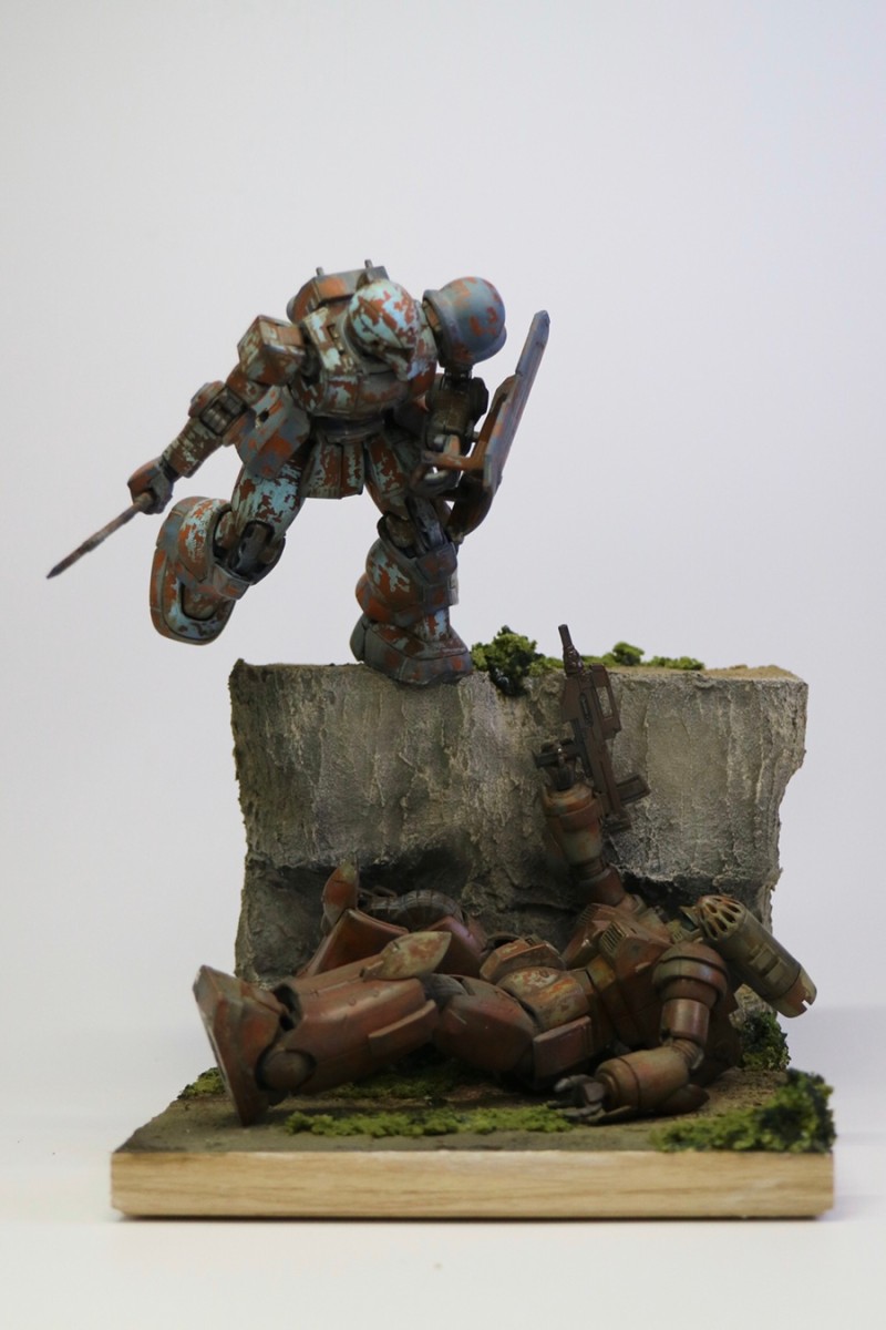 디 오리진 버젼 자쿠1과 건캐논을 웨더링해서 미니 디오라마를 해줬습니다.