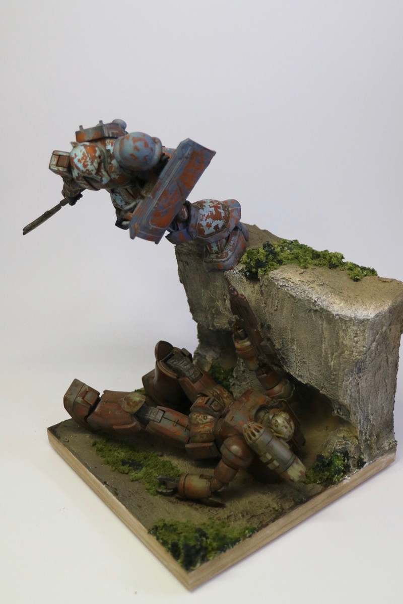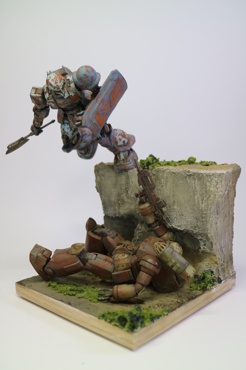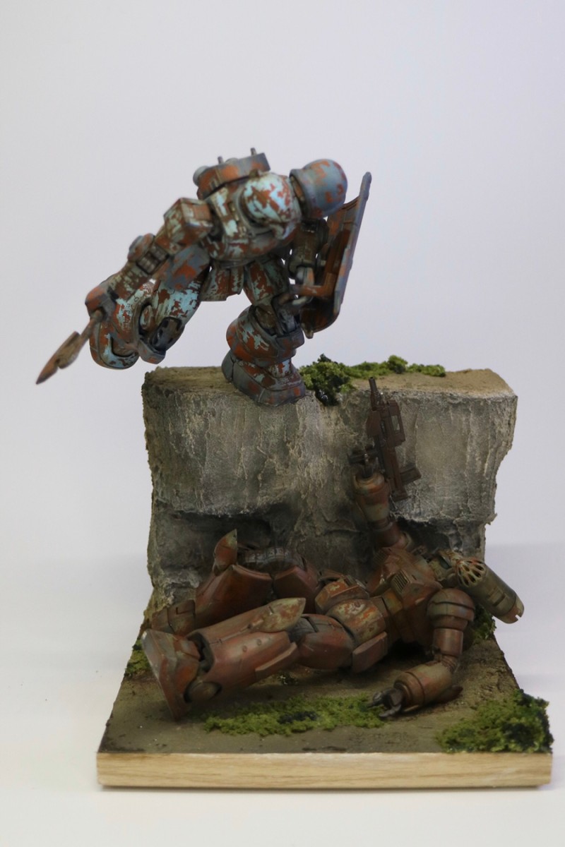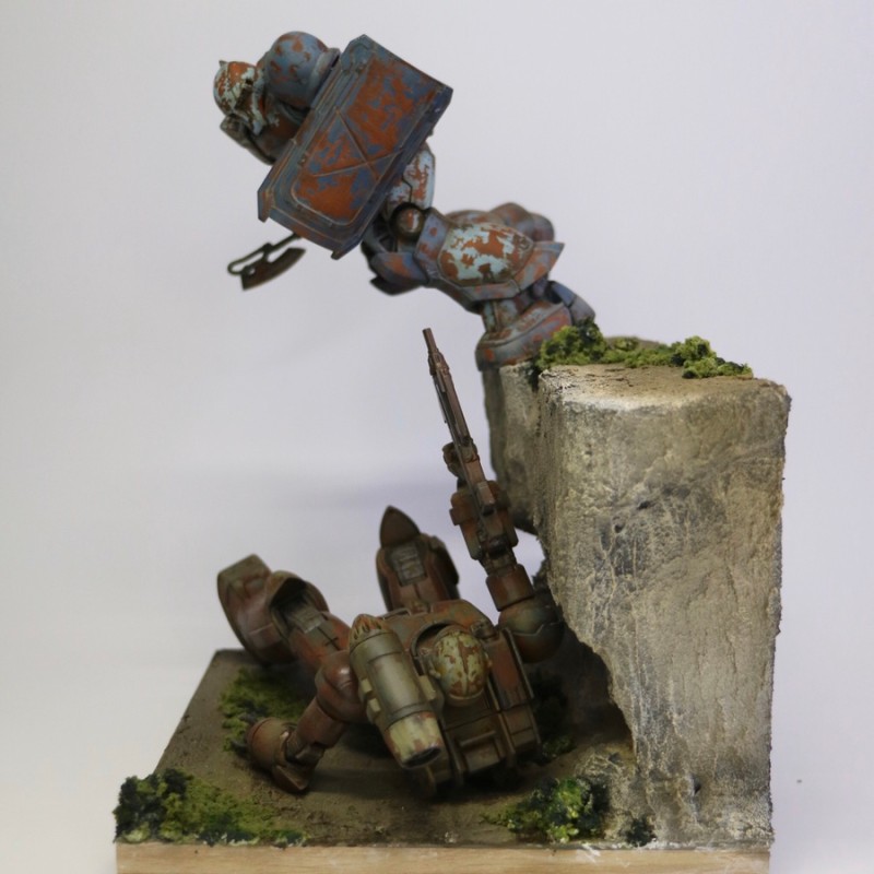 디 오리진 버젼 자쿠1과 건캐논을 웨더링해서 미니 디오라마를 해줬습니다.