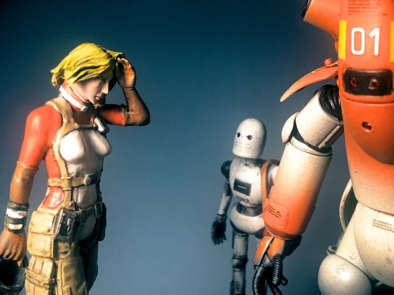 마스터 박스의 괴랄한 1/24 킷에 포함 되어있던 안드로이드 로봇 하나를 스타워즈의 C-3po 같은 역할로 투입했습니다.