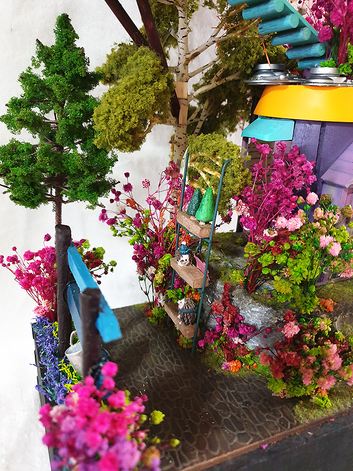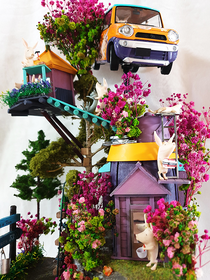 나무 위에 집이 하나 더 있으면 재미있지 않을까 싶어서 마트에서 구입한 어항 전용 소품을 활용해서 만들어줬습니다.