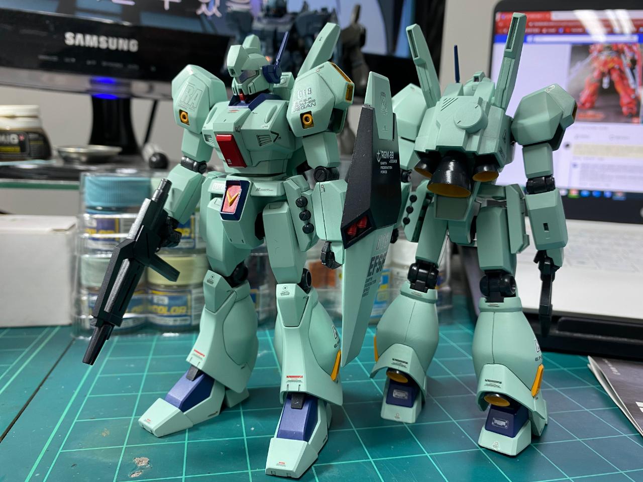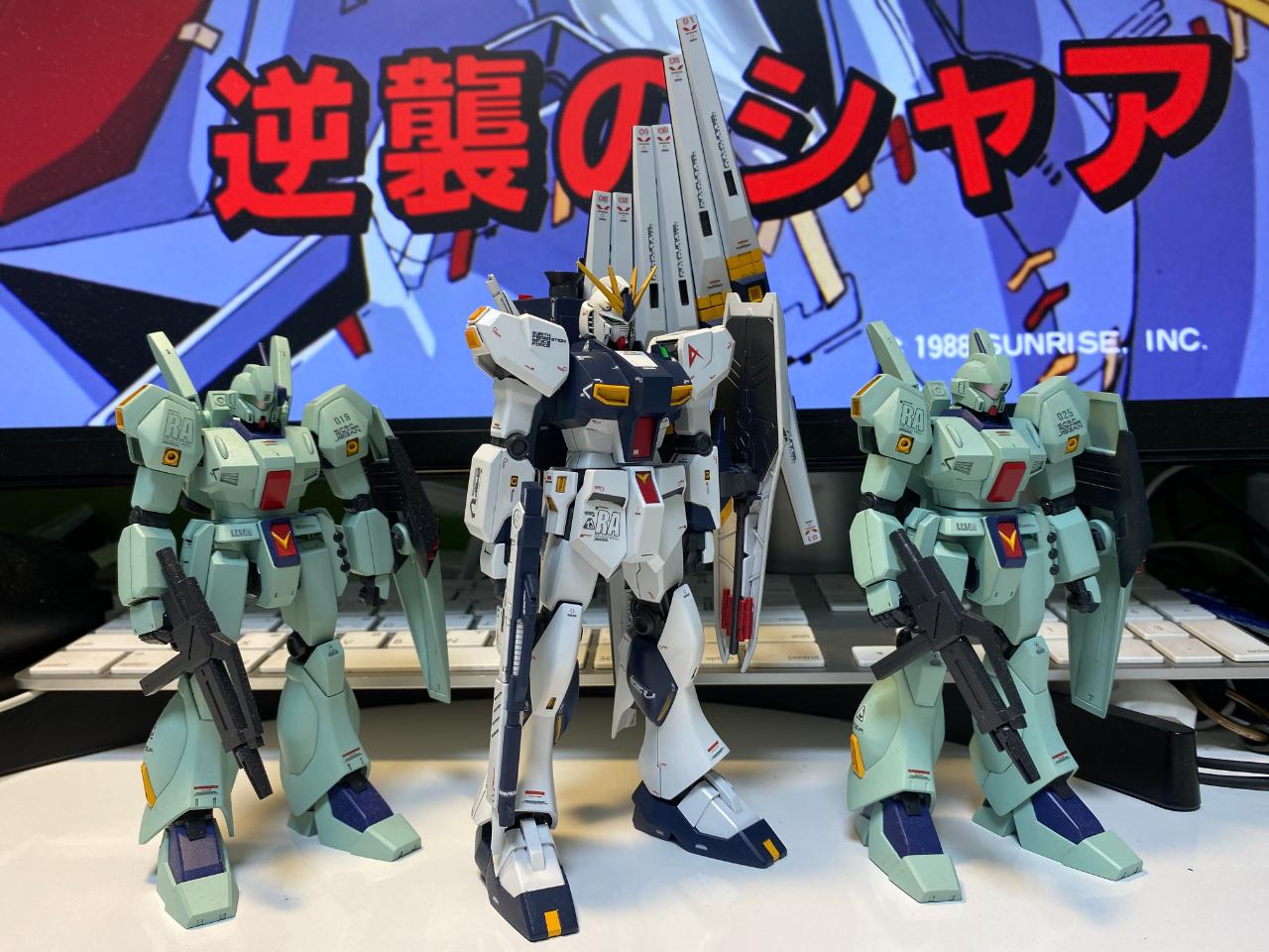 네이버카페 ARchivE.9의 [역습의 샤아] 테마전에 출품했던 HGUC 누건담과 제간입니다. 키트는 대부분 설명서대로 조립을 했고 데칼은 누건담은 MG누건담Ver.Ka를 HGUC사이즈로 축소한 것을 적용하였습니다. 제간은 제간용으로 나온 데칼세트의 구성이 상대적으로 간단한 것이라 Ver.Ka의 느낌을 낼 수 있도록 별도의 데칼을 추가해서 분위기를 맞춰주었습니다.
