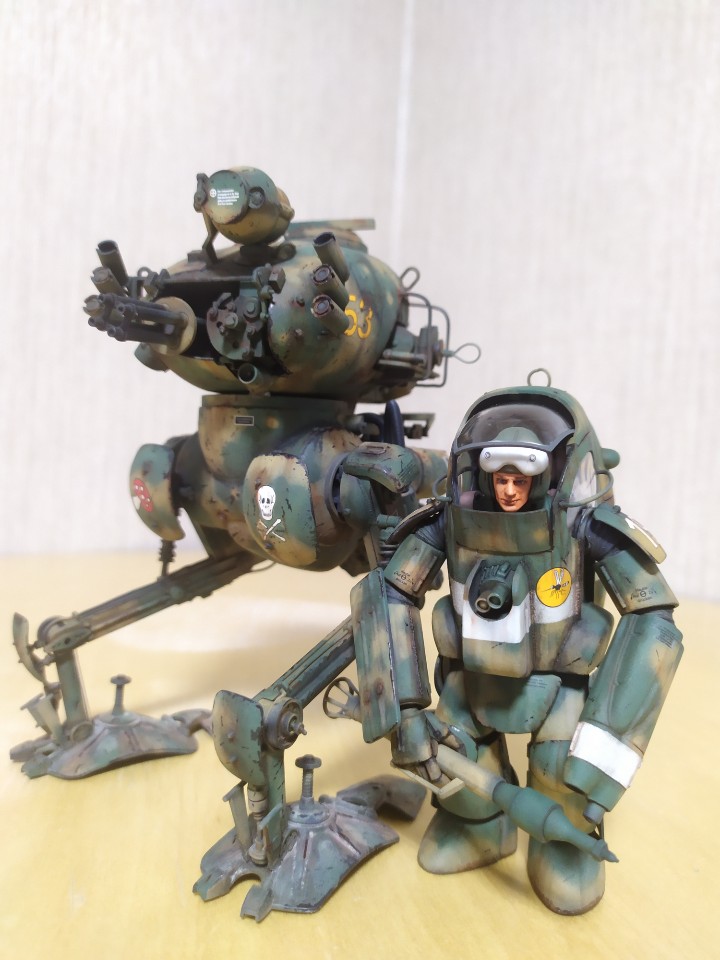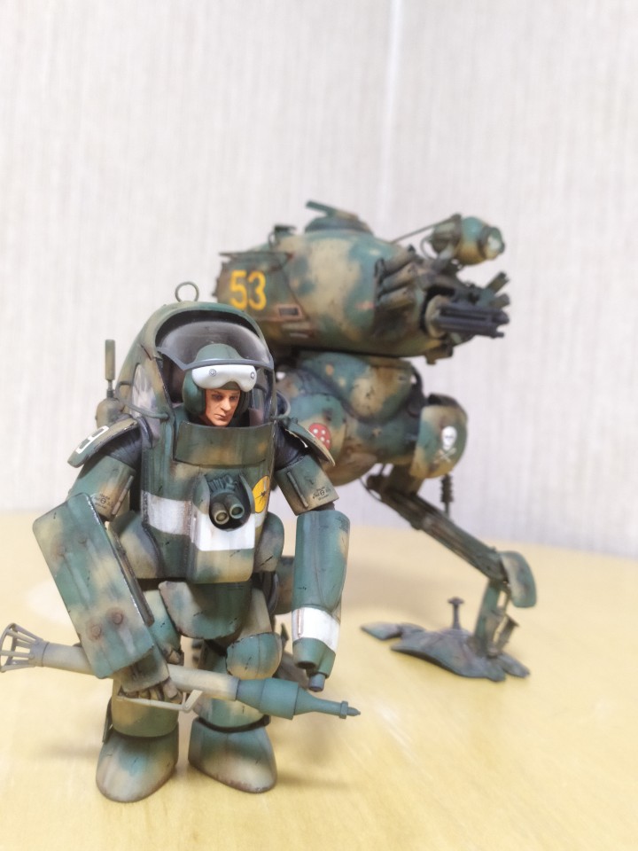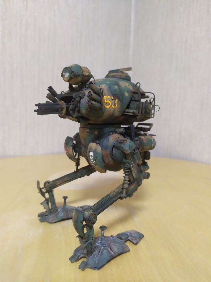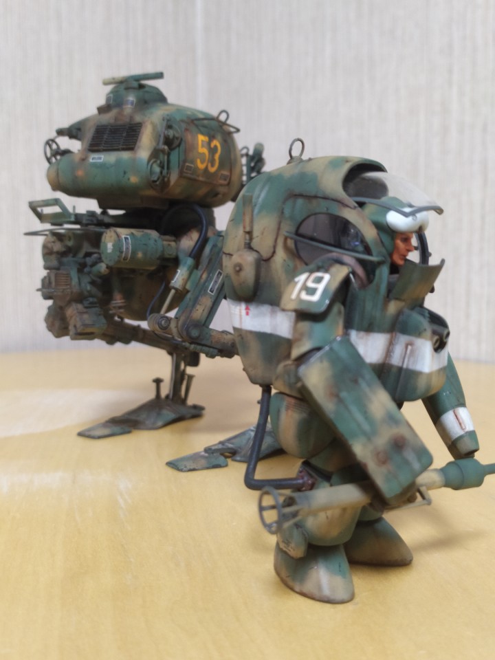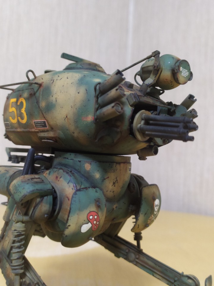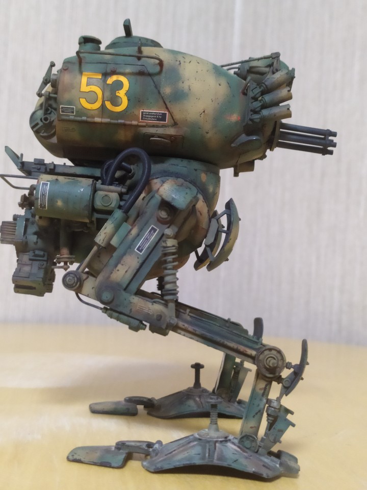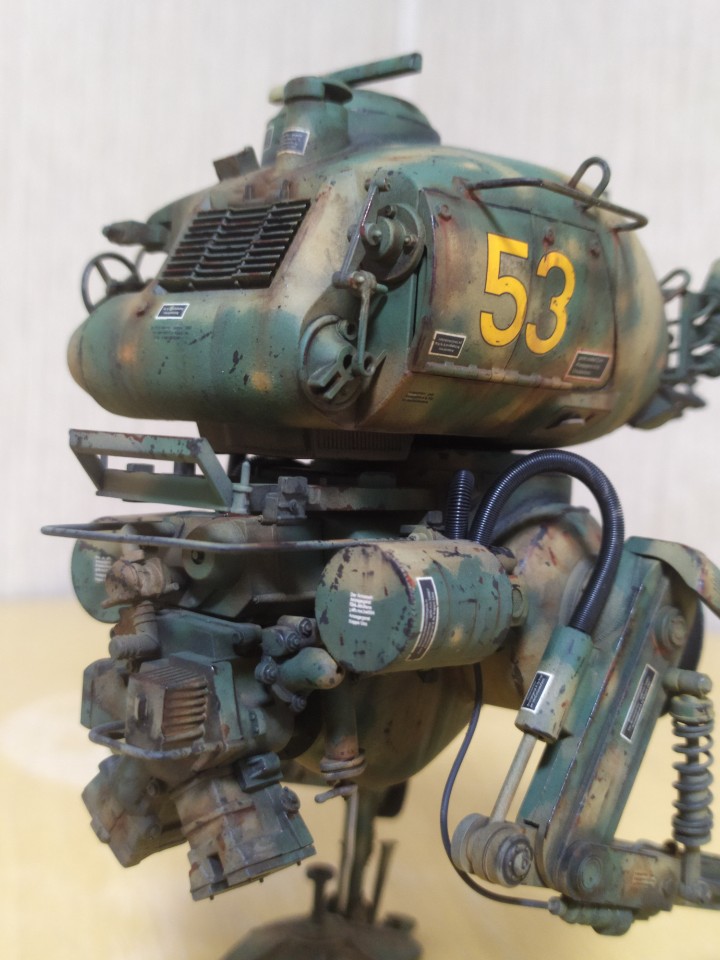 신작 박스아트를 재현하고자 험브롤 에나멜로 명암을 넣은 2색 위장무늬로 도색을 했고, 워싱의 색을 여러가지로 바꾸어가며 밑색을 풍부히 했네요. 늘 하던대로 유화물감과 코픽마커를 이용하여 치핑과 웨더링을 진행했습니다.