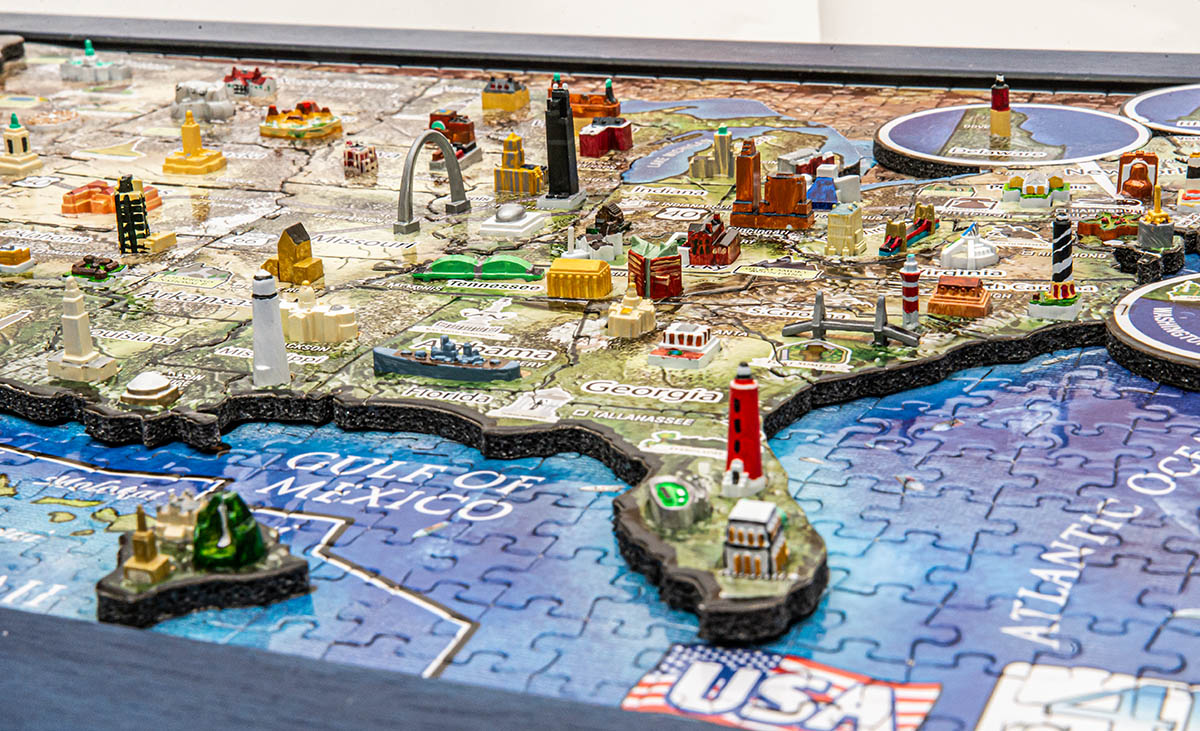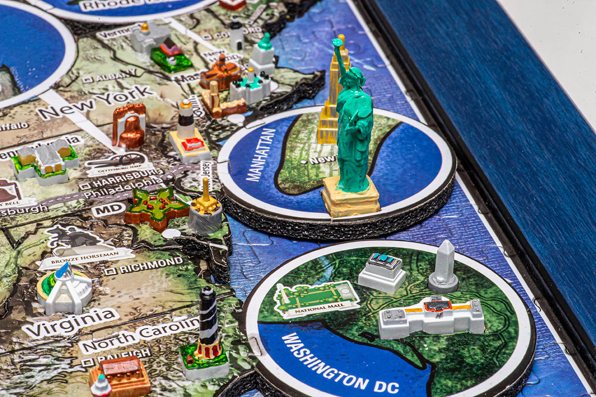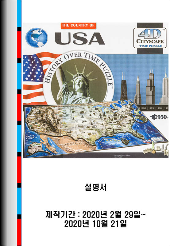 가볍게 골랐다가 생각보다 긴 시간을 잡아먹은 4D Cityscape Puzzle USA 입니다. 보통 퍼즐과는 달리 스펀지판, 그리고 플라스틱 건물 피규어로 복합 구성된 입체 퍼즐입니다.