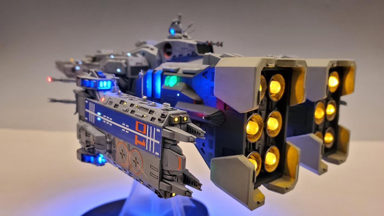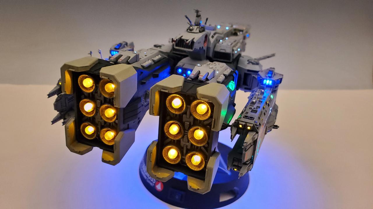 우주전함의 컨셉에 맞게 최대한 LED를 넣을수 있을만큼 심어주었고, 몇가지 깜박이는 효과도 주었습니다.