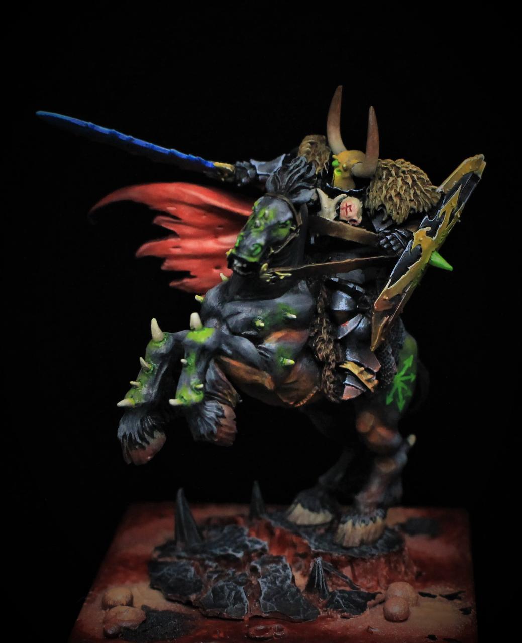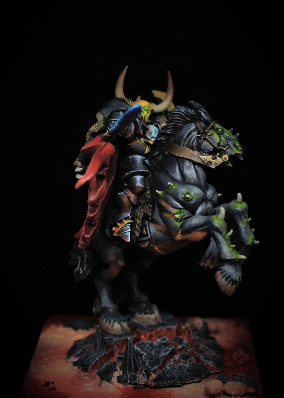 미니어쳐 워게임인 워해머 판타지와 피시게임 워해머 토탈워에 등장하는 카오스 진영 히어로 유닛 아카온입니다.