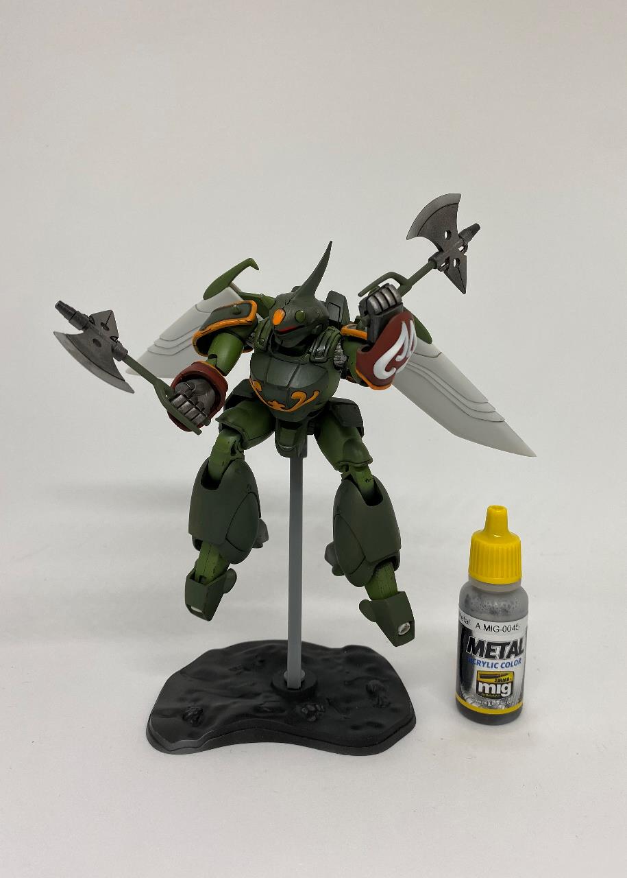 반다이에서 발매한 가리안 시리즈 중의 윙갈-지 입니다. (윙갈 지는 윙갈중에 지휘관용 메카닉으로 얼굴 생김새와 색조합이 좀 화려한 기체입니다)