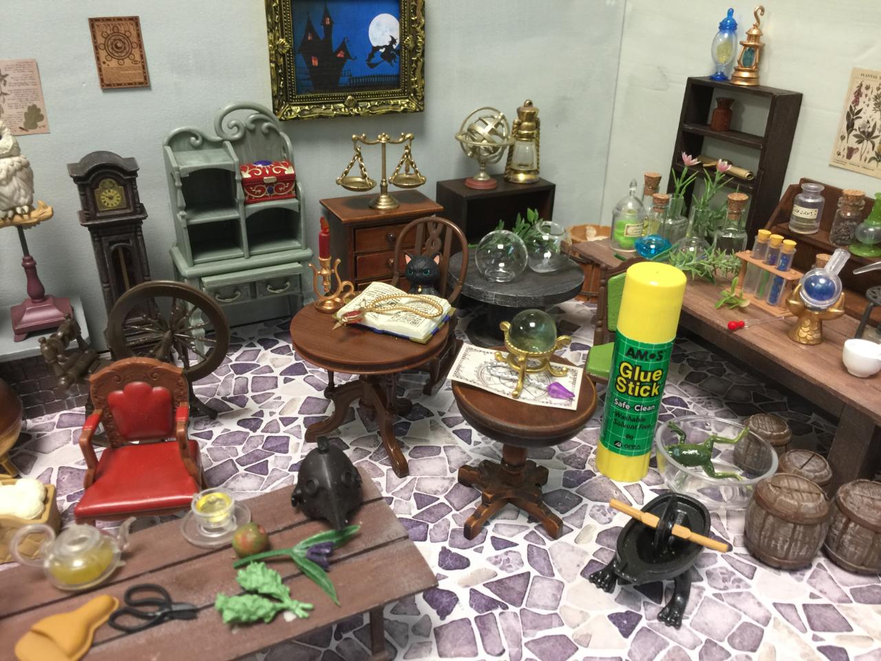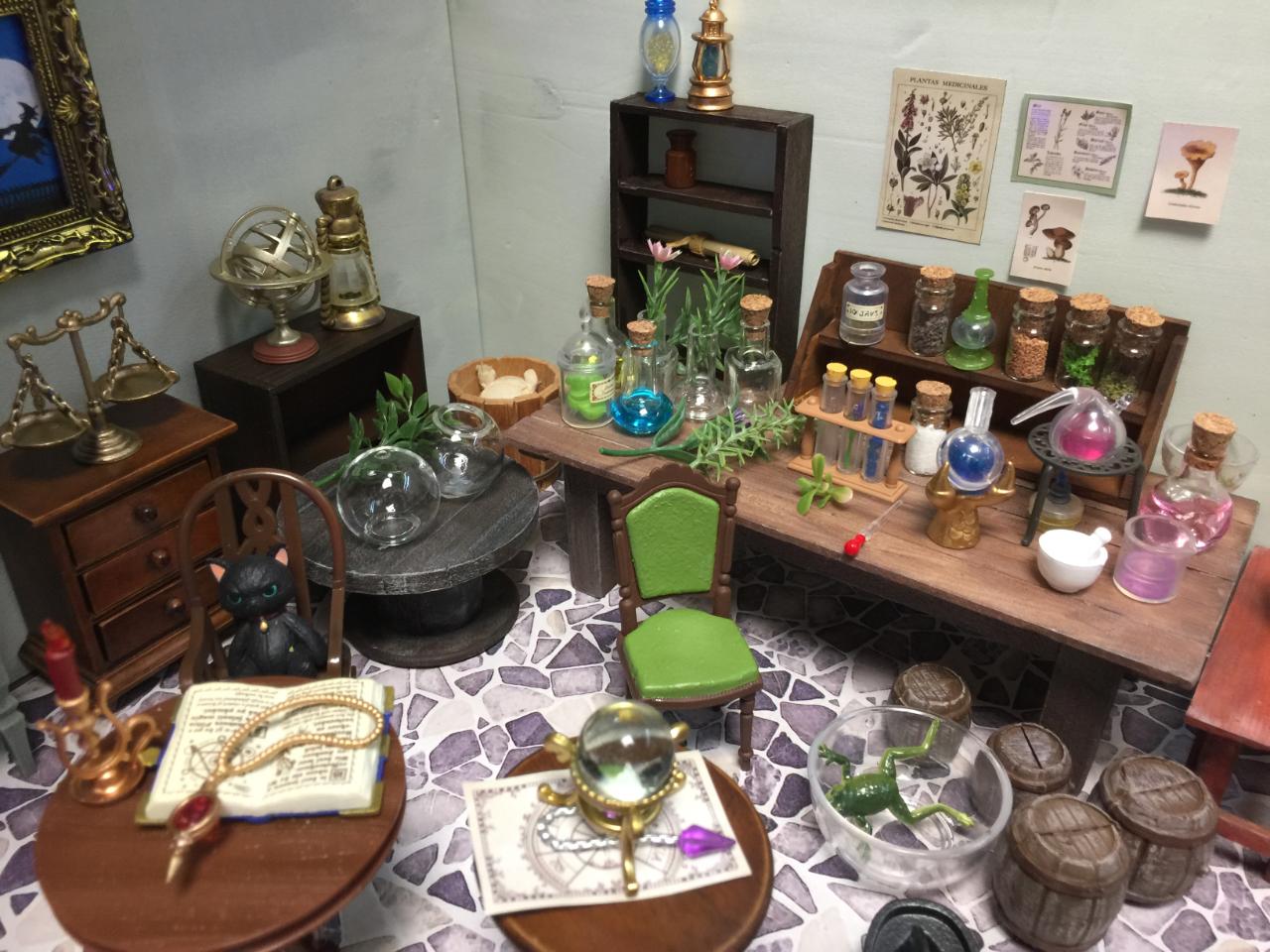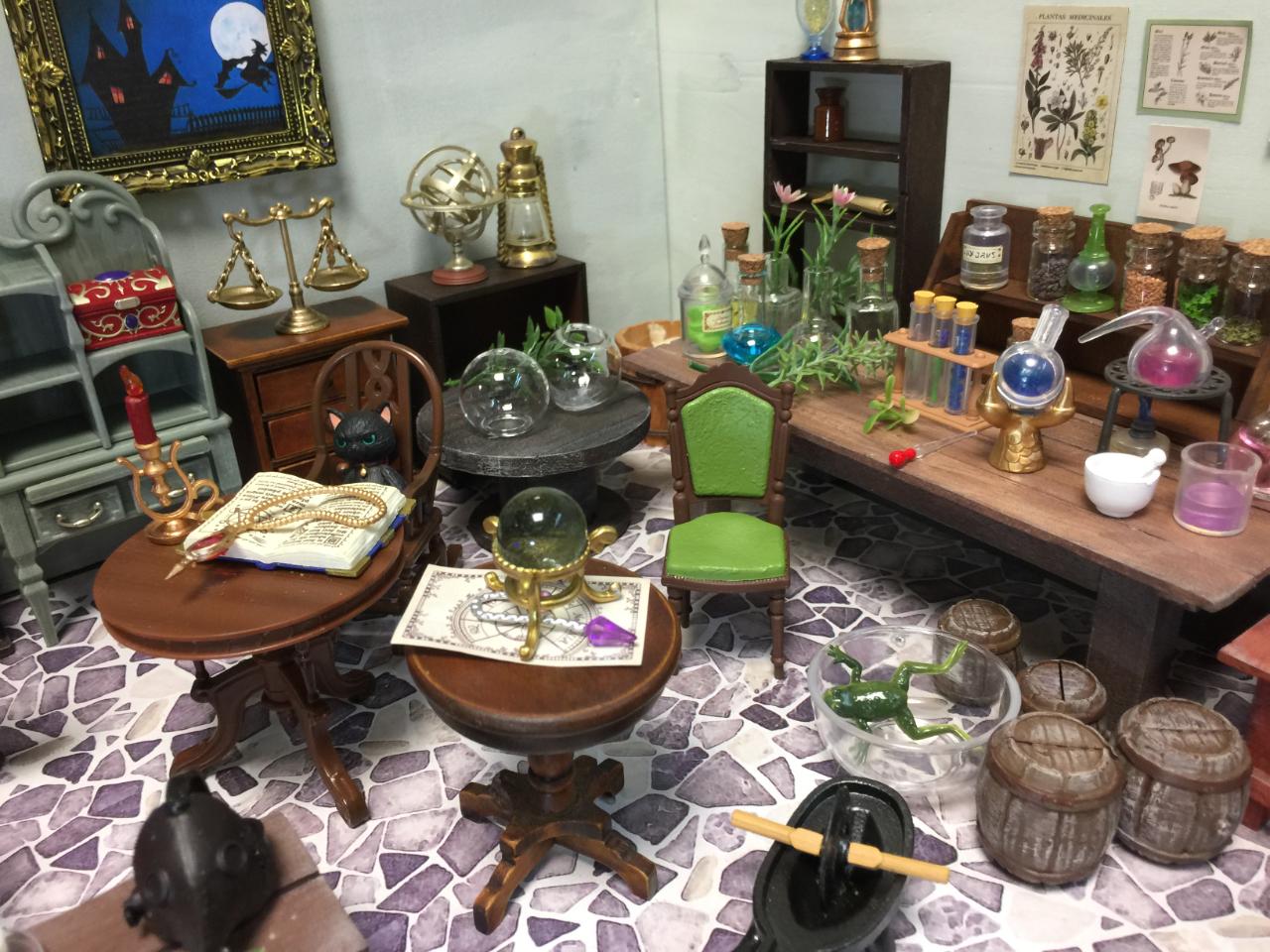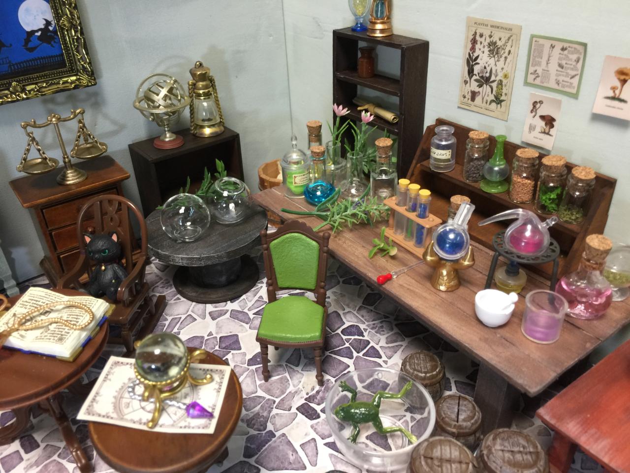 마법의 약물을 만드는 시설입니다. 약초나 희귀식물로 만들며 다른사진에 보이는 검은색 가마솥에는 들쥐나 개구리 등 온갖 혐오스러운 동물과 곤충으로 마녀스프를 만들고 있습니다.