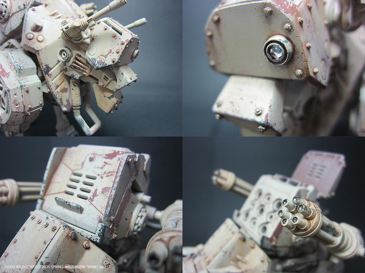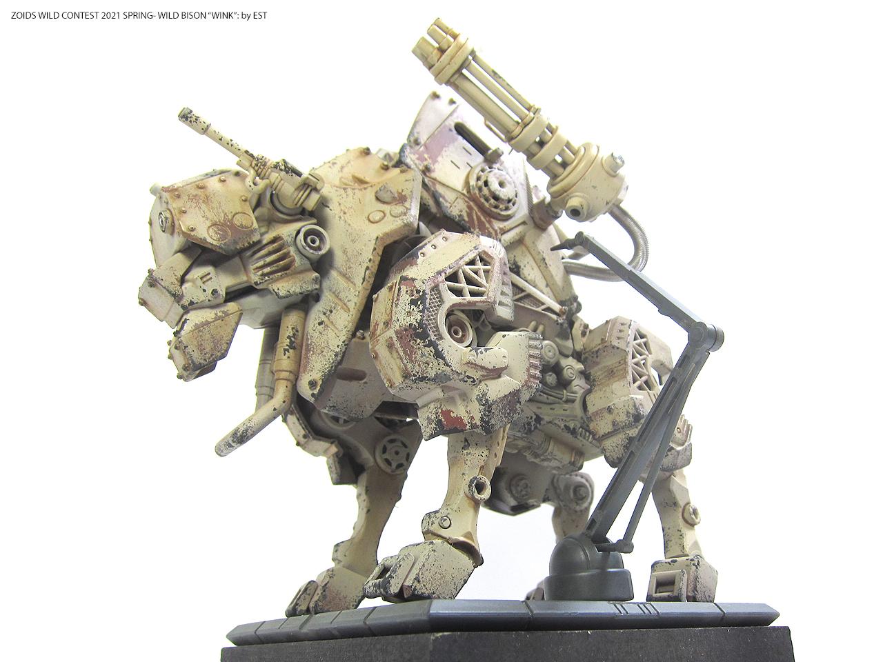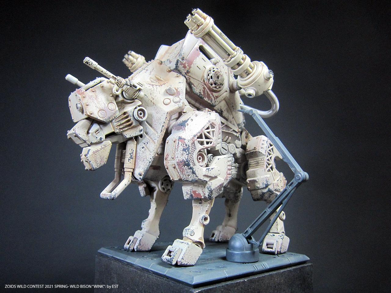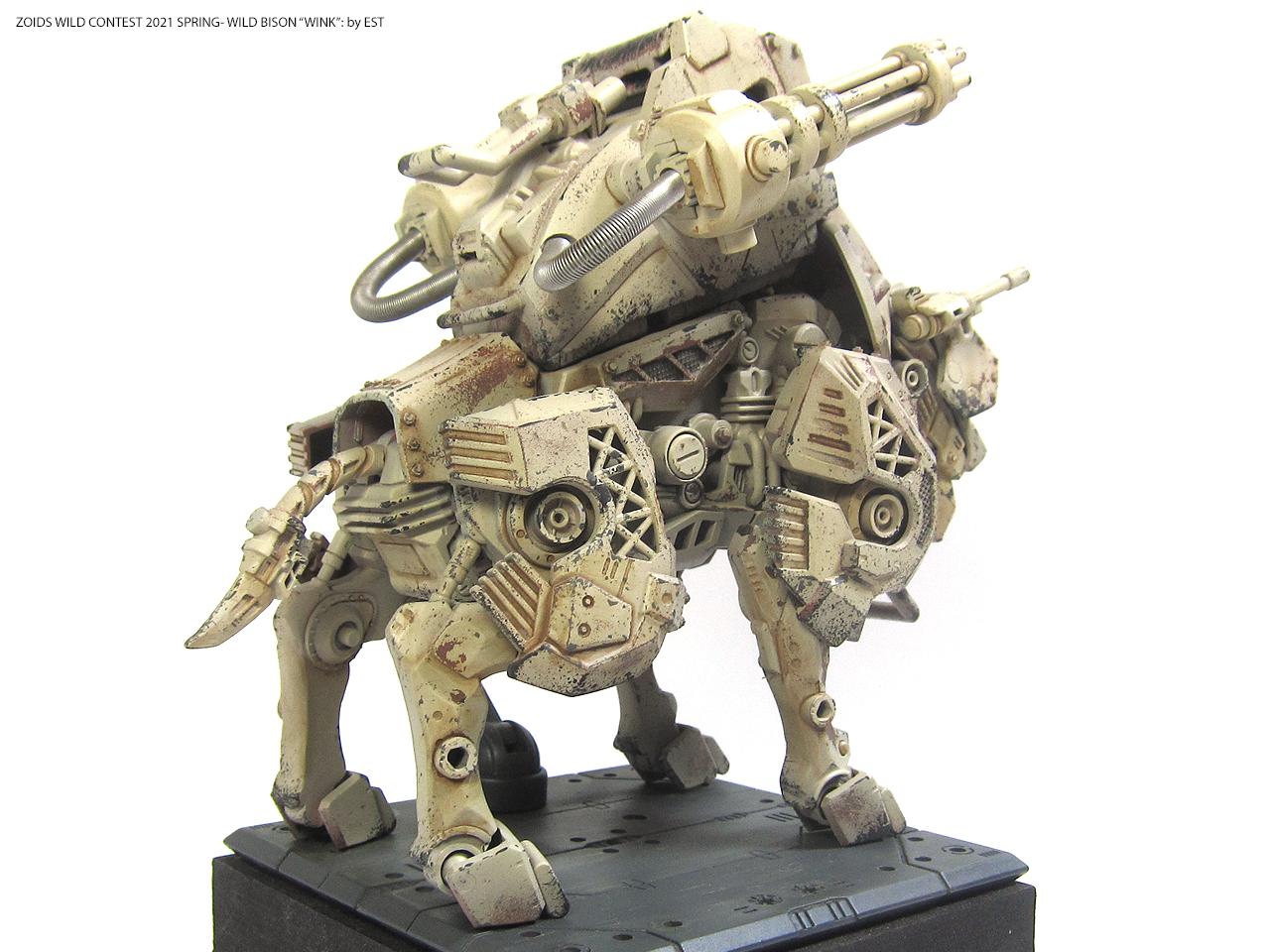 기종명은 와일드 바이슨, 기체의 애칭은 외눈 센서에 착안해서 '윙크'라고 붙여봤습니다. 조이드 특유의 생물감을 배제하고 무기질적인 병기의 느낌을 주는 것도 작업의 포인트였네요.