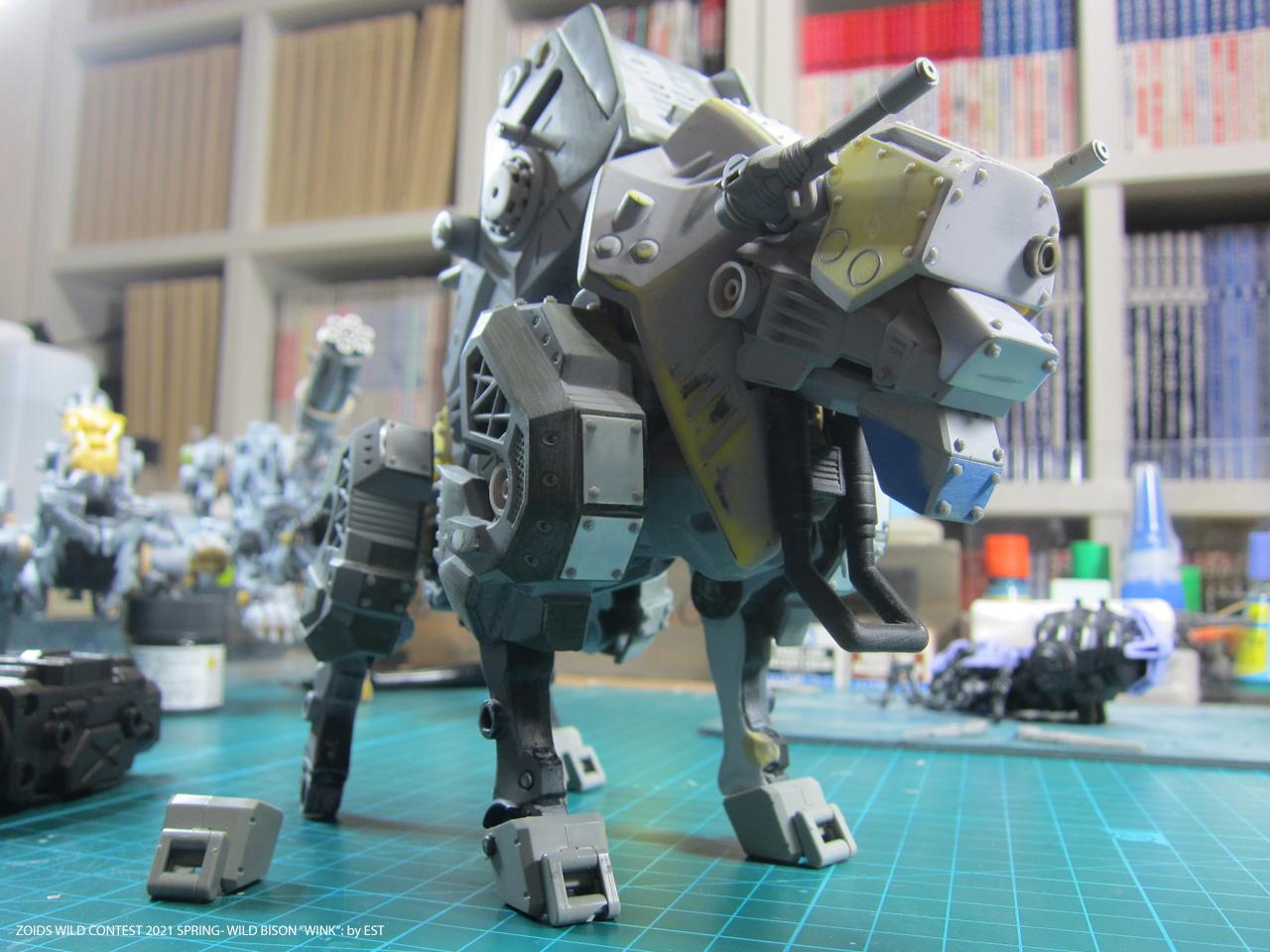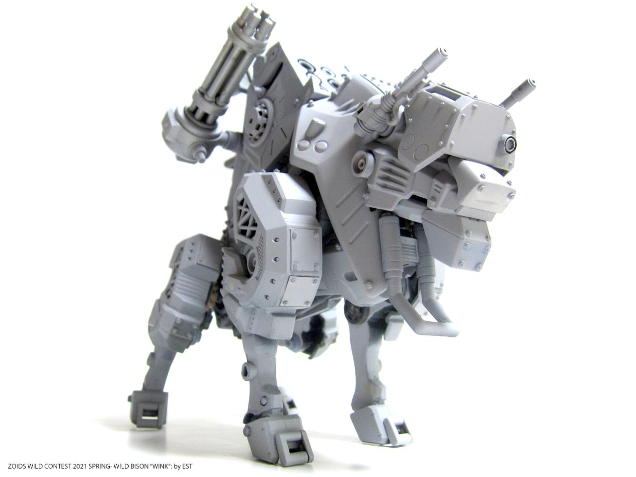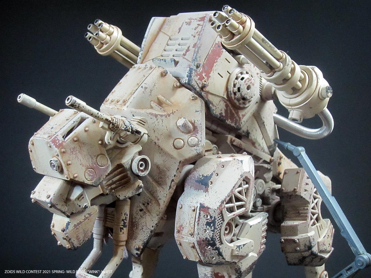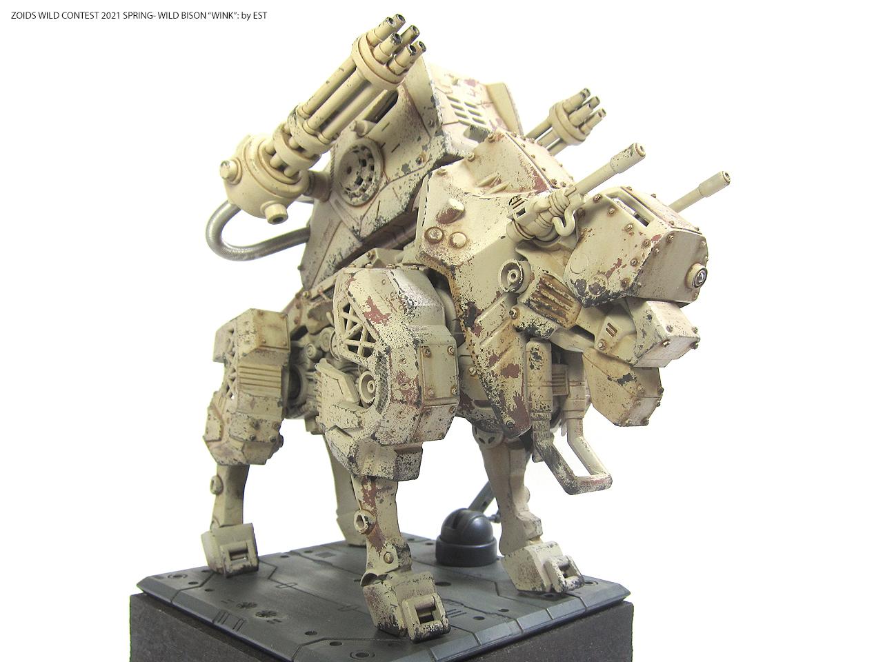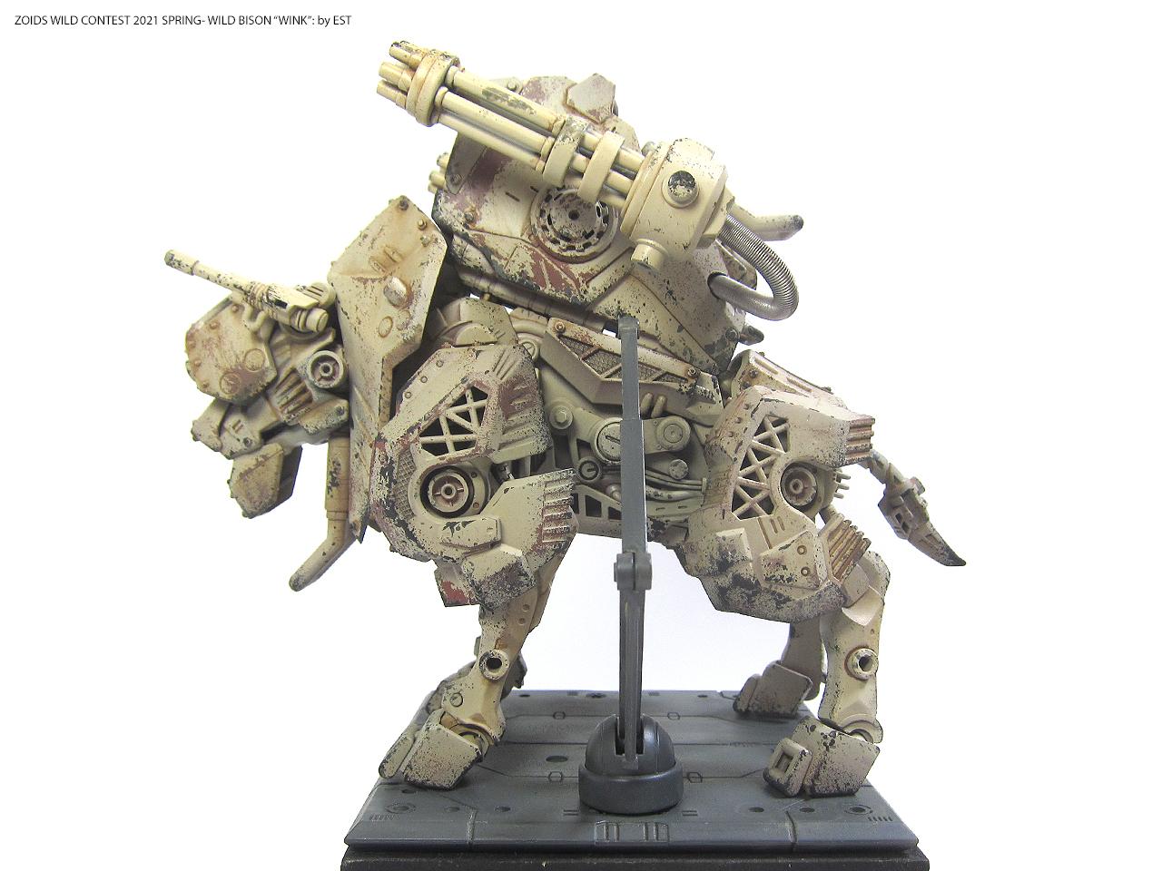 기종명은 와일드 바이슨, 기체의 애칭은 외눈 센서에 착안해서 '윙크'라고 붙여봤습니다. 조이드 특유의 생물감을 배제하고 무기질적인 병기의 느낌을 주는 것도 작업의 포인트였네요.