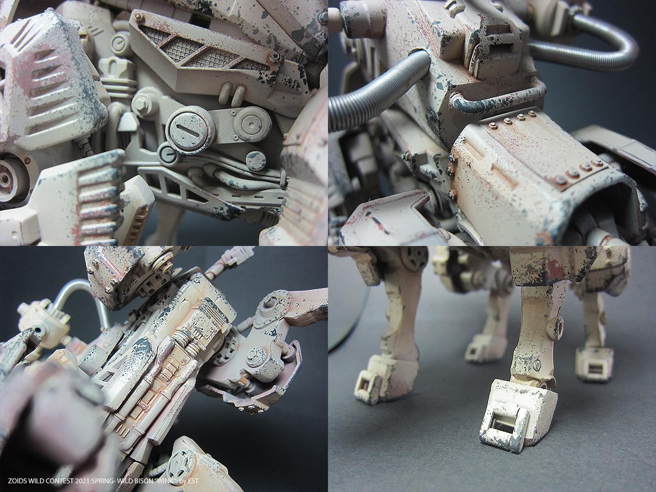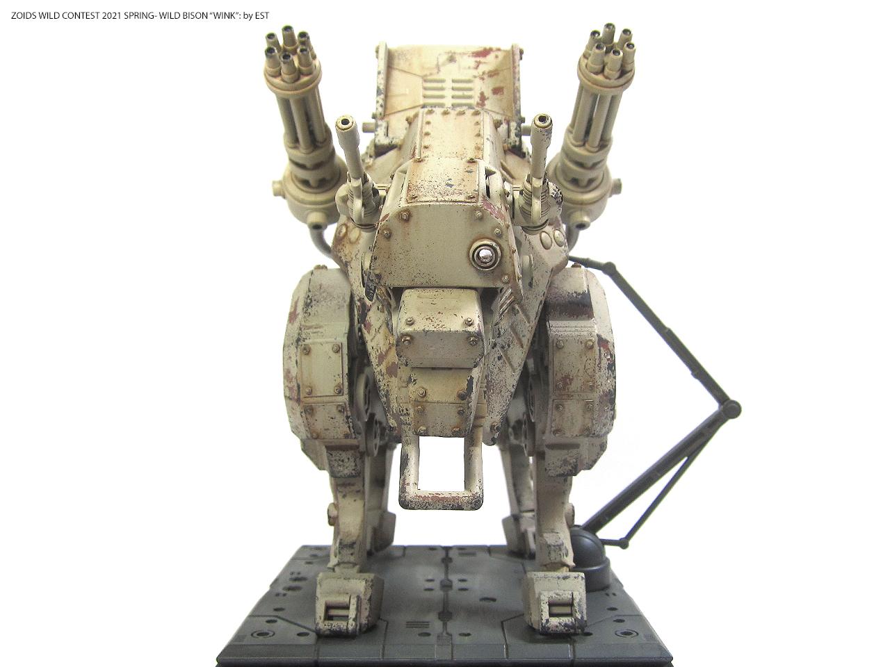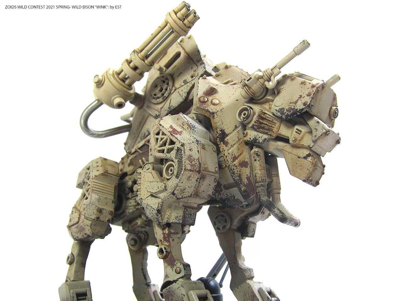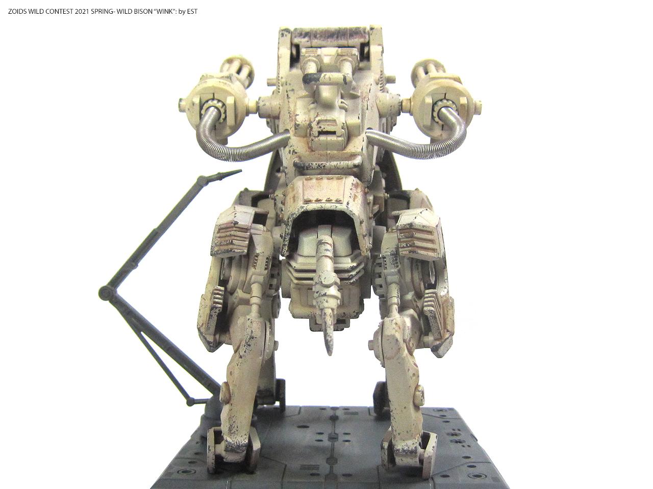 기종명은 와일드 바이슨, 기체의 애칭은 외눈 센서에 착안해서 '윙크'라고 붙여봤습니다. 조이드 특유의 생물감을 배제하고 무기질적인 병기의 느낌을 주는 것도 작업의 포인트였네요.