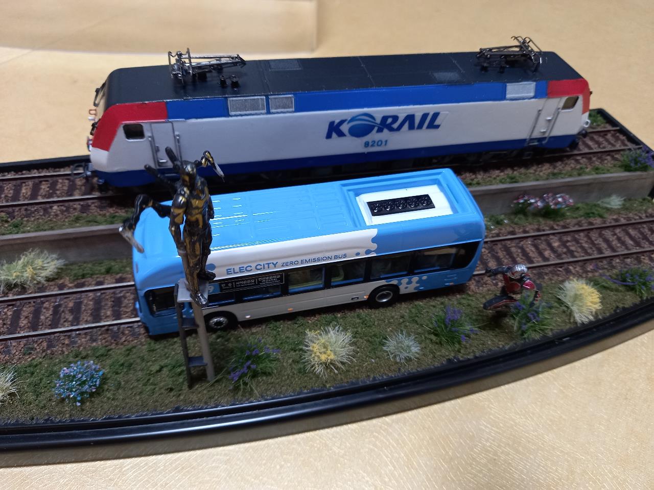 맨땅모형 1/87 무궁화호와 1/87 현대 일렉트릭 버스 콜라보