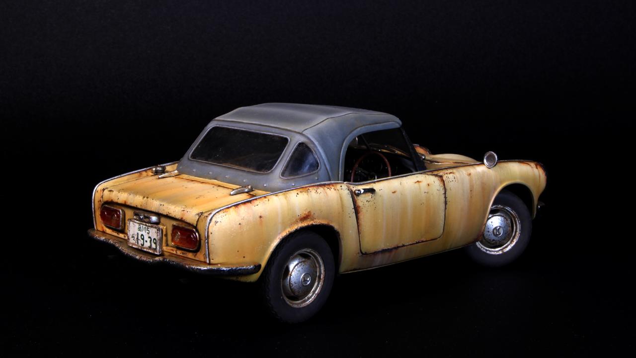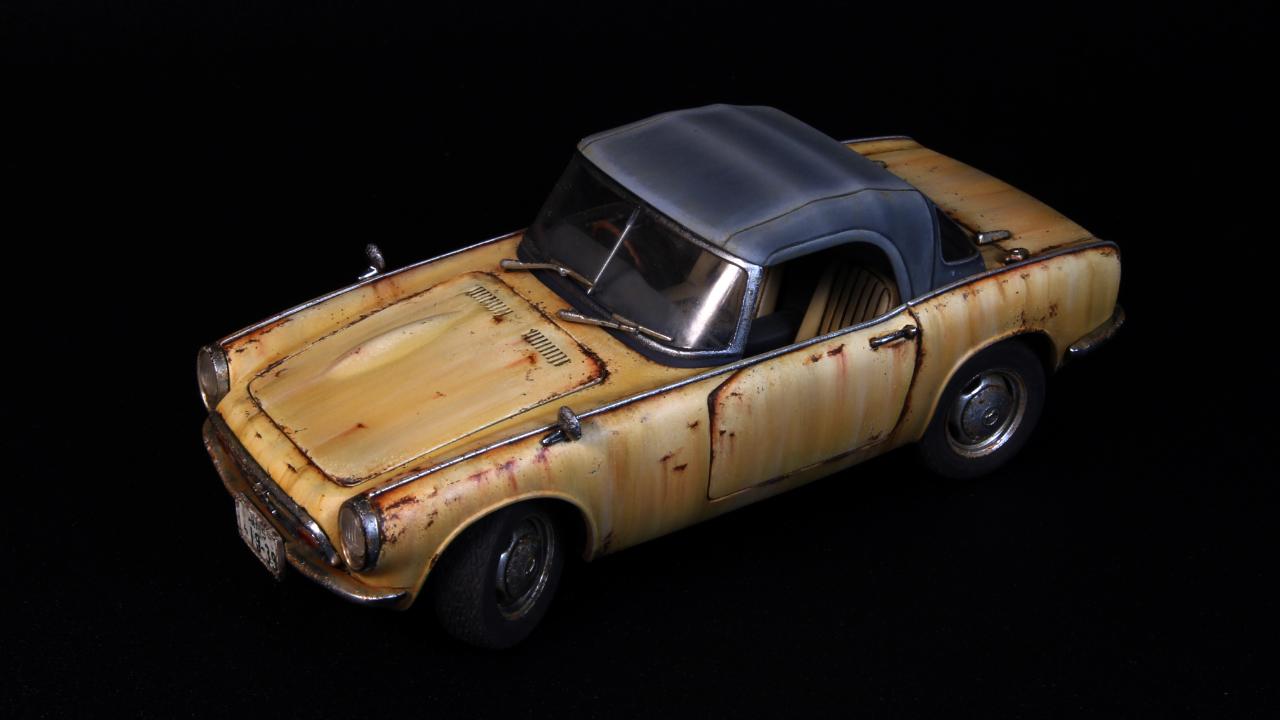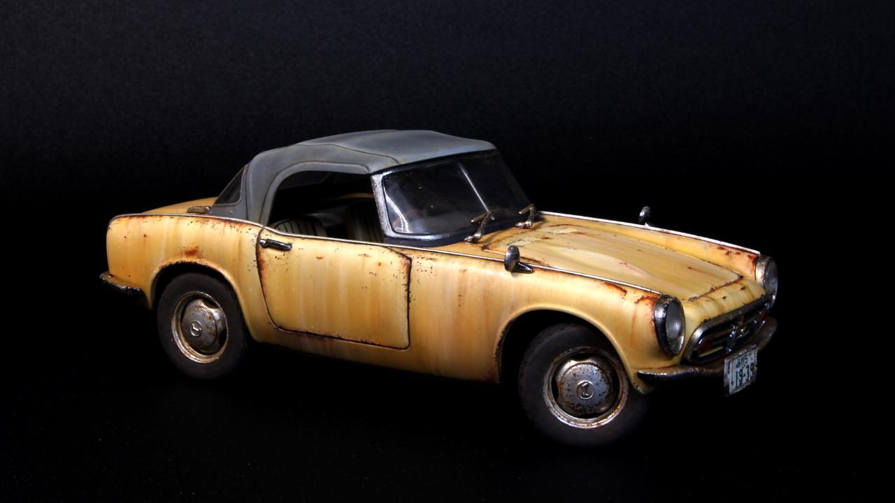 반짝반짝 도색은 하기싫어서 15년정도 반조립상태로 묵혀 놓았던 타미야 1/24 HONDA S800을 완성하였습니다. 40년동안 관리안하고 운행하면 이런상태가 되지 않을까 하는 생각으로 작업해보았습니다.