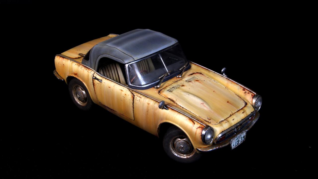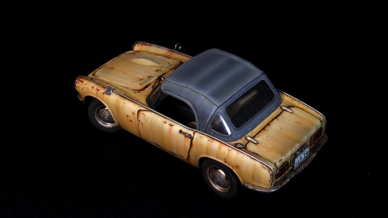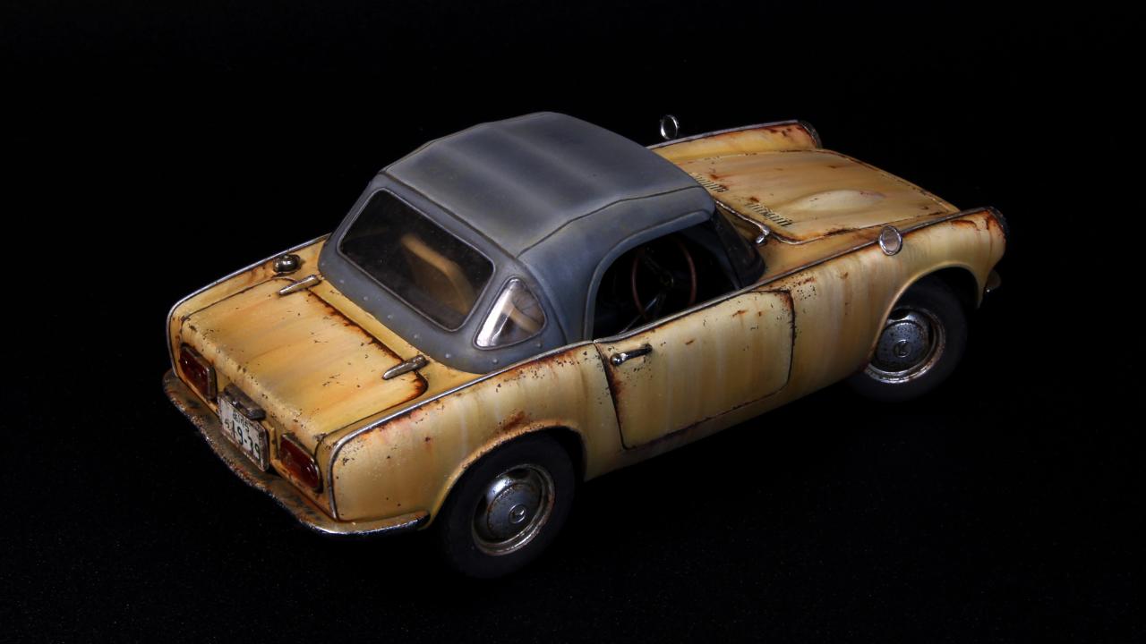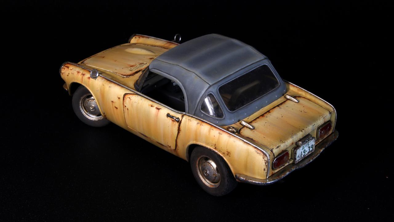 반짝반짝 도색은 하기싫어서 15년정도 반조립상태로 묵혀 놓았던 타미야 1/24 HONDA S800을 완성하였습니다. 40년동안 관리안하고 운행하면 이런상태가 되지 않을까 하는 생각으로 작업해보았습니다.