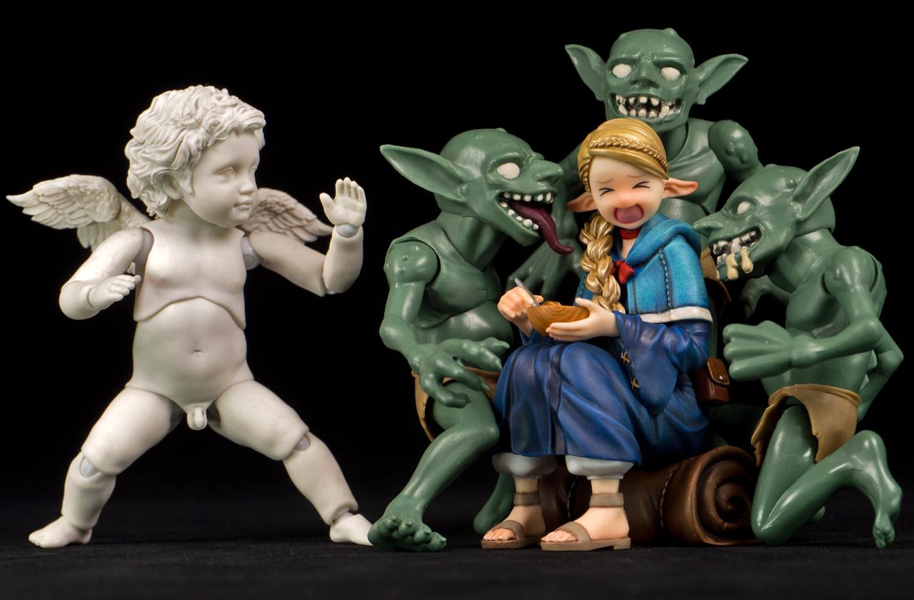 피그마 큐피드랑 세 마리에 3만원 정도 부고 구입한 고블린들과 같이 사진을 연출해봤습니다 ^^