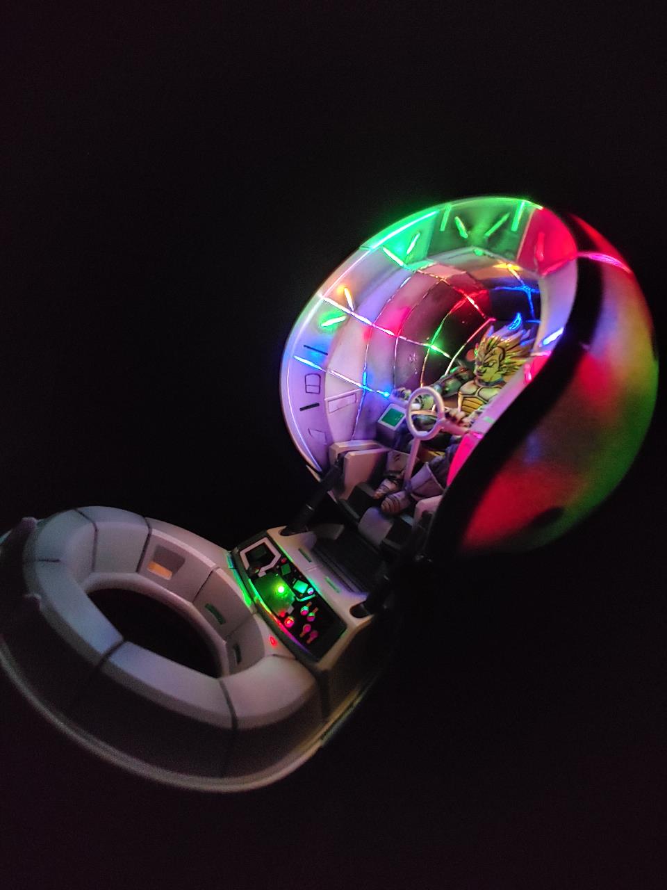 탱크를 모터라이즈로 개조할때의 짜릿함이 아직도 좋네여!별건없고 알록달록 트리용 led를 이용해 안쪽에 화려한 우주선의 불빛을 연출했습니다.