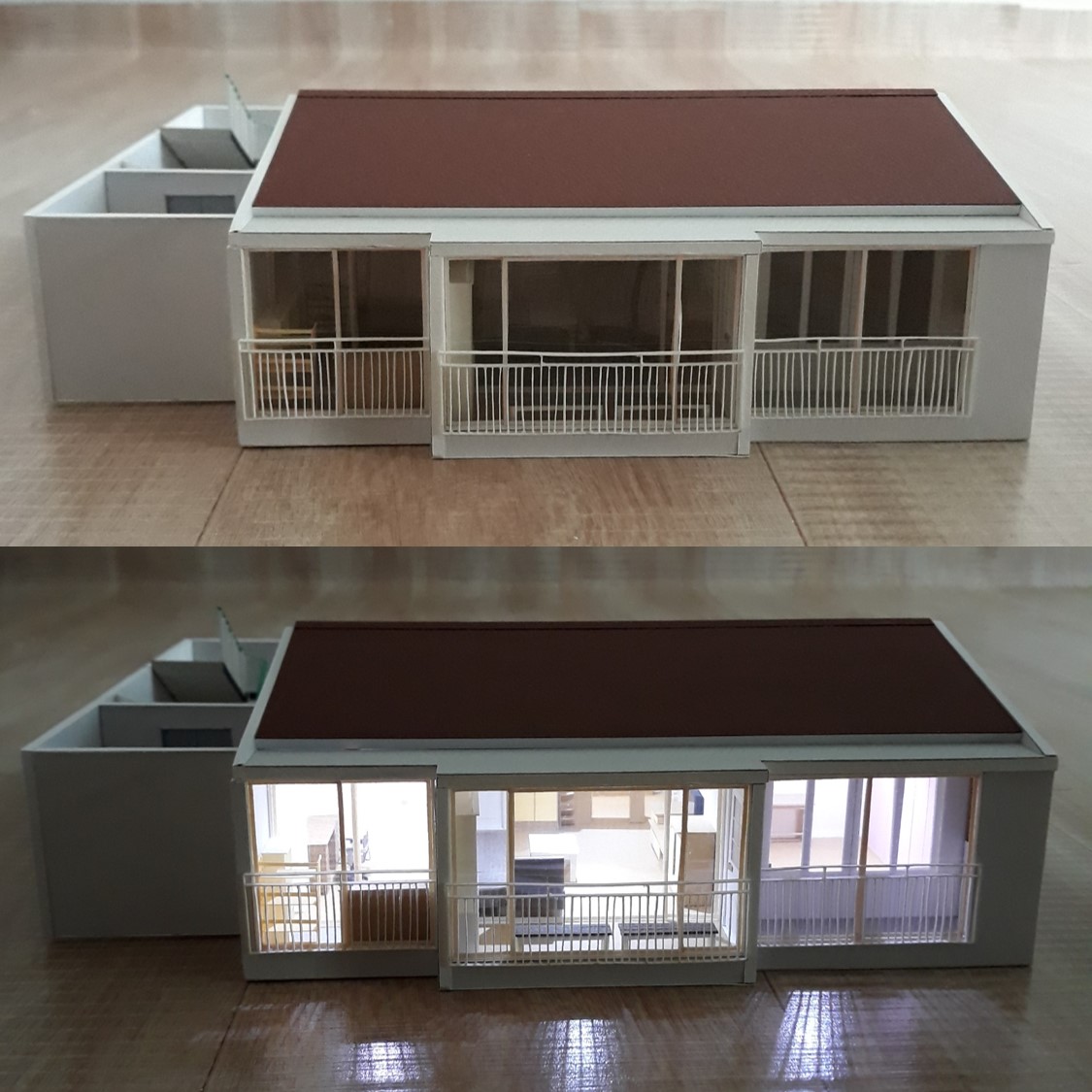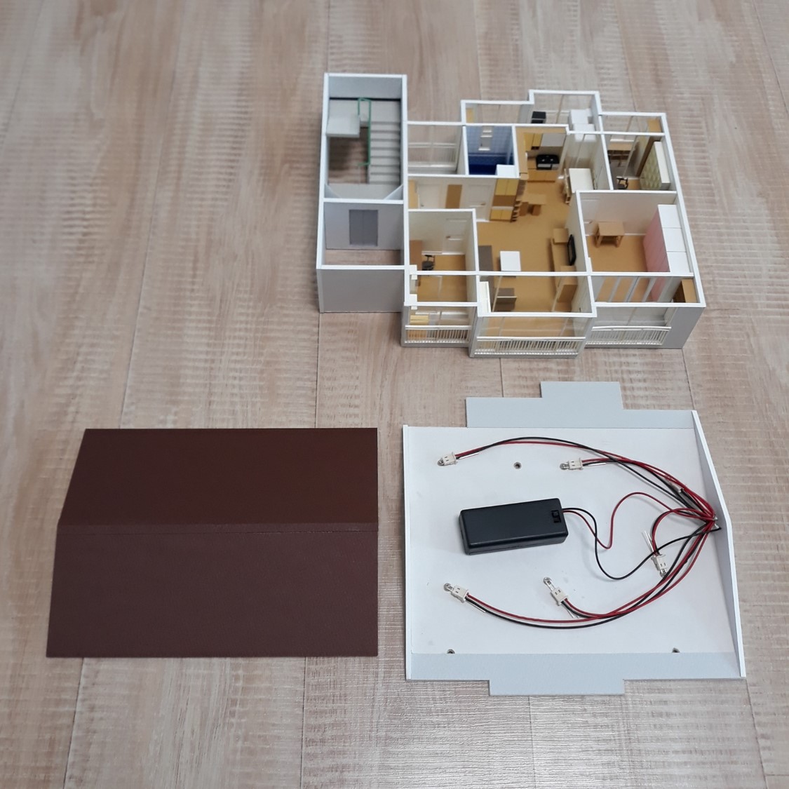 조명을 LED로 추가했는데 배선과 건전지 등을 가릴 방법을 찾다가 지붕을 만들게 되었습니다.