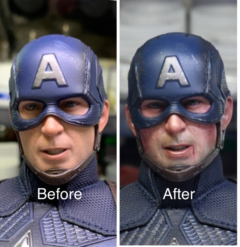 얼굴추가도색 및 웨더링 그리고 의상웨더링 및 데미지 표현을 해봤습니다.