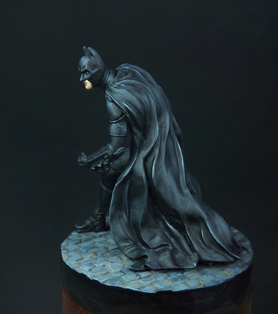 이번에 작어한 피규어는 배트맨입니다. 배트맨비긴즈의 슈트를 묘사한 75MM급 레진피규어입니다. 가장 좋아하는 캐릭터인지라 정말 즐겁게 작업했습니다. 블랙슈트 특유의 무게감과 광택 표현의 정도를 많은 고민끝에 적용했습니다. 그리고 기존 방식보다 NMM기법을 통해 코믹물 느낌이 좀 살도록 했습니다.