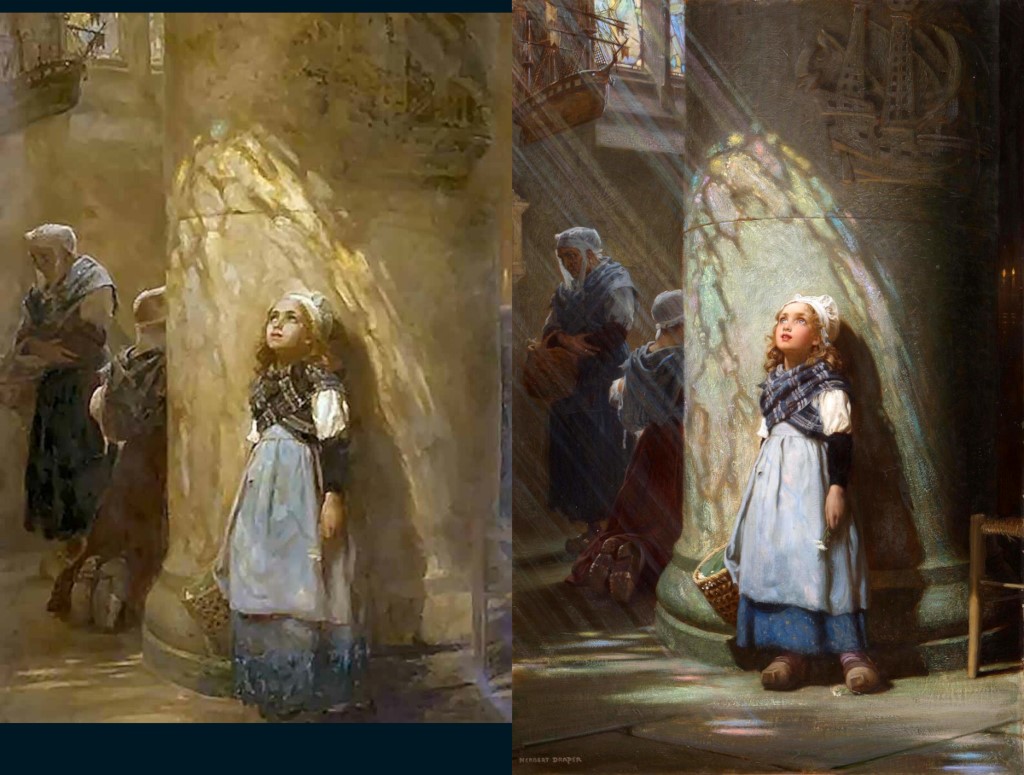 왼쪽은 화가의 오리지널 그림이고, 오른쪽은 현대에 누군가? 리터칭한 작품인데, 누가 했는지는 잘 모르겠네요.