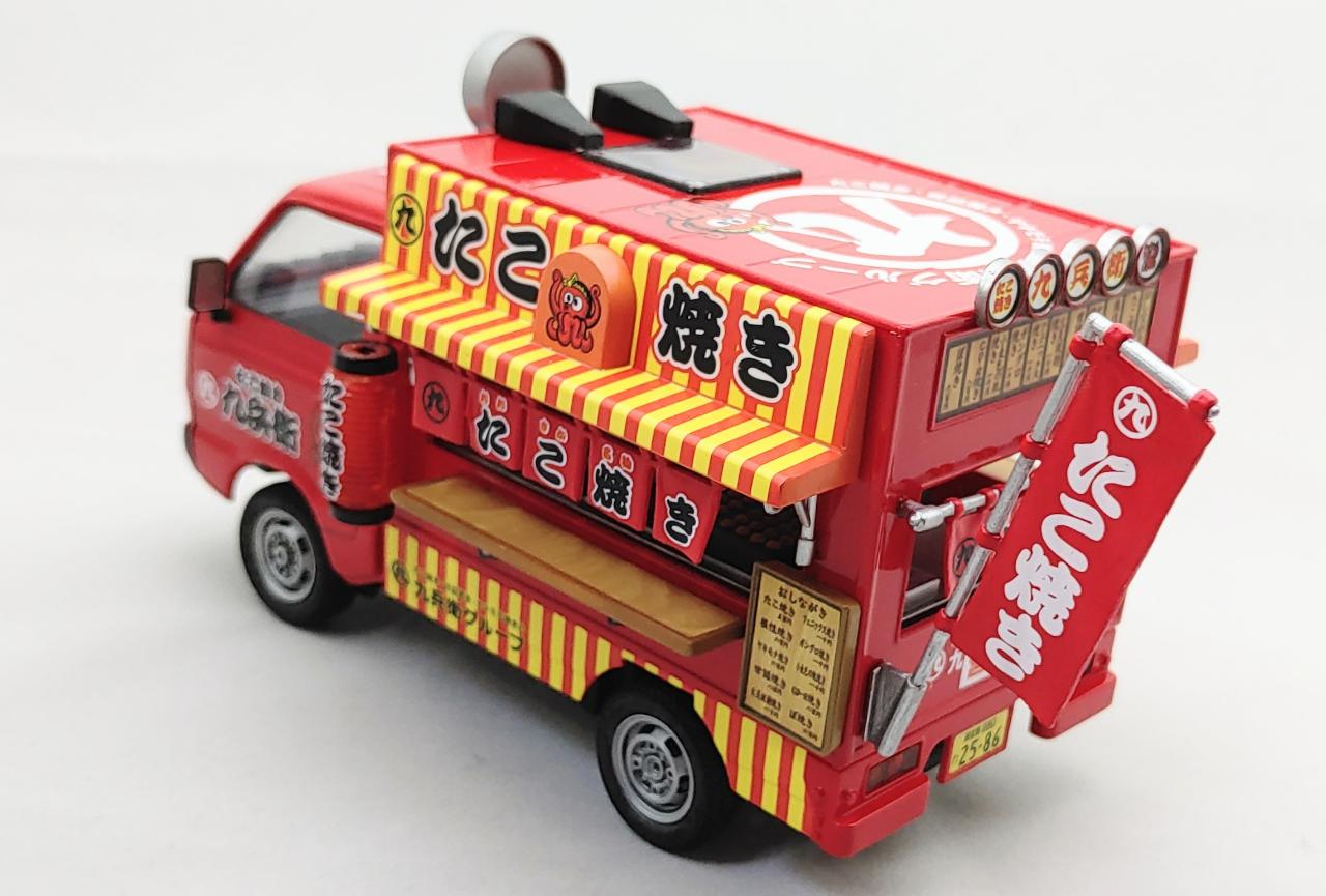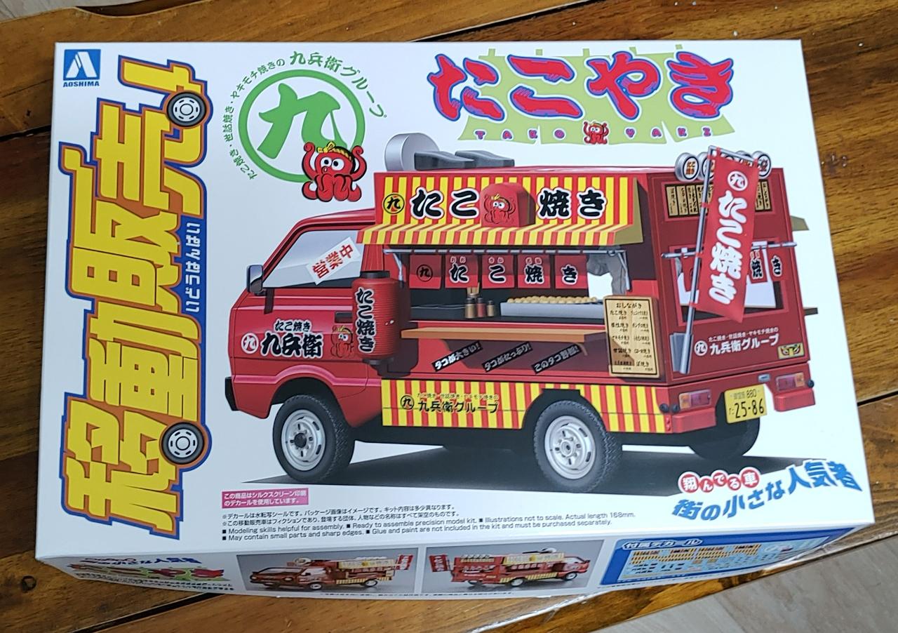 아오시마에서 나온 타코야키 트럭입니다. 차량 자체는 스즈키에서 나온 캐리라는 소형 트럭인데 일본에서 여러 가지 용도로 잘 활용되는 경트럭입니다. 키트 자체는 거의 30년이 다 되는 물건인데 초기에 모터라이즈로 나왔던 흔적이 남아 있고 디테일을 논하기에는 좀 모자라는 부분이 많이 있습니다.