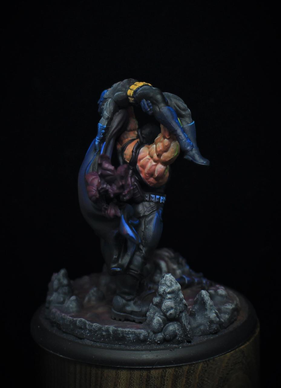 나이츠 미니어처 사의 배트맨 미니어처 게임에 사용되는 베인 모델입니다! 한정판으로 나온것이라 배트맨을 들고 허리를 접고 있는 형태가 되었습니다.