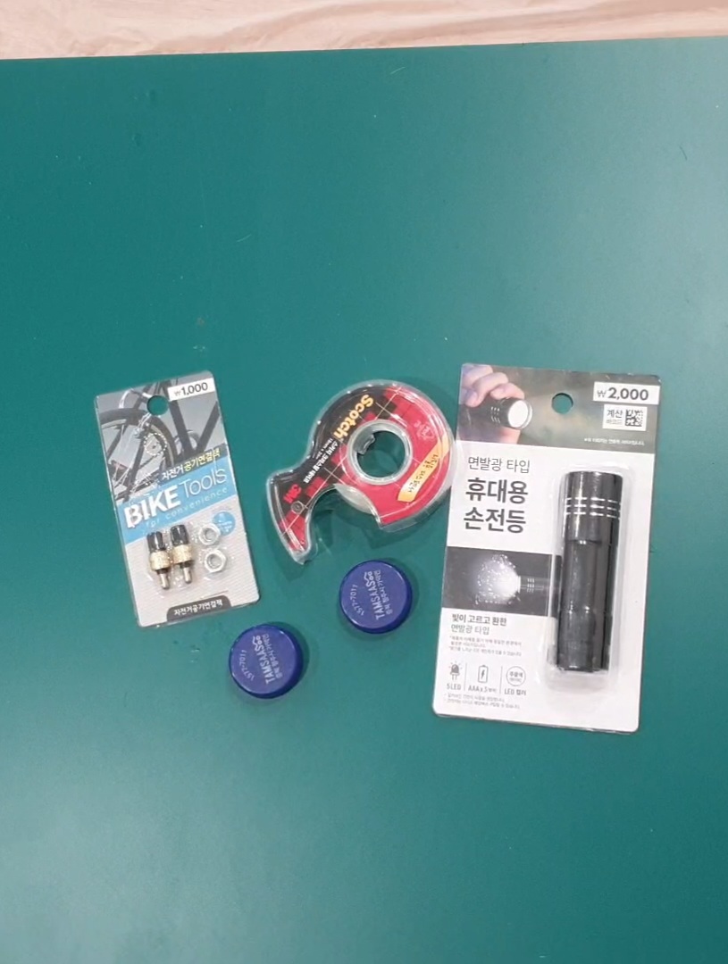 빈 스카치테이프 케이스와 휴대용 손전등을 이용해 만든 1인승 이동수단 입니다