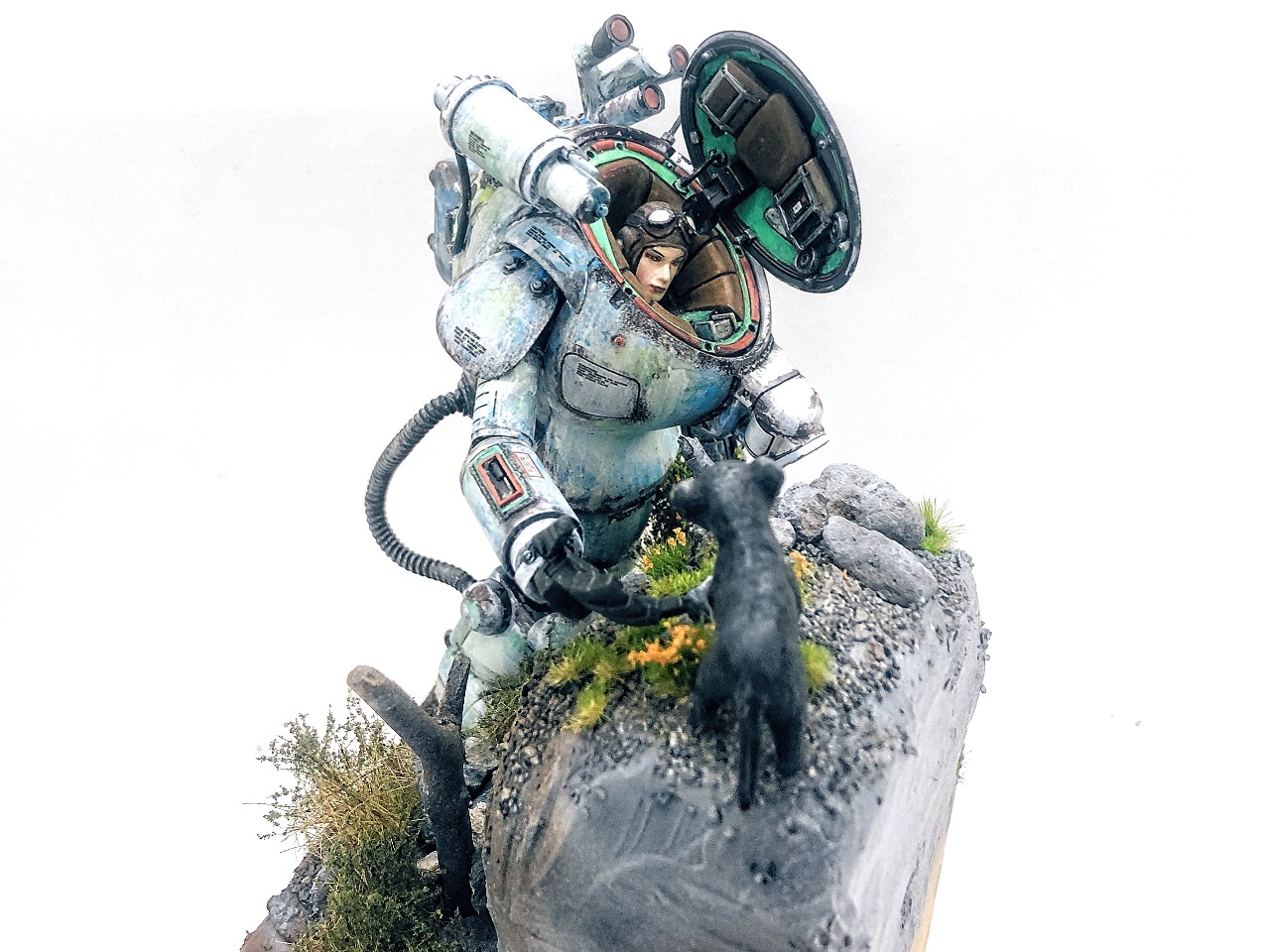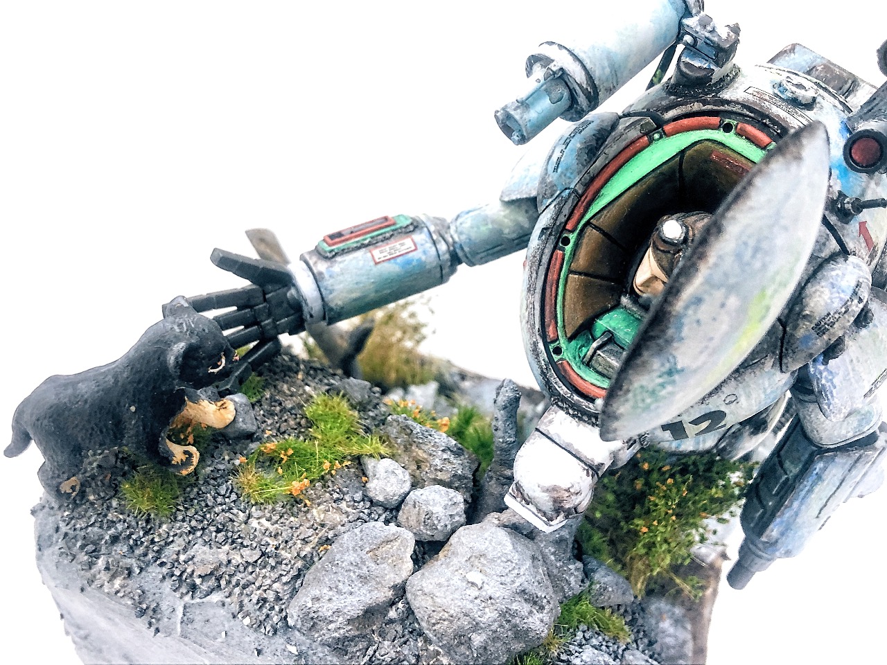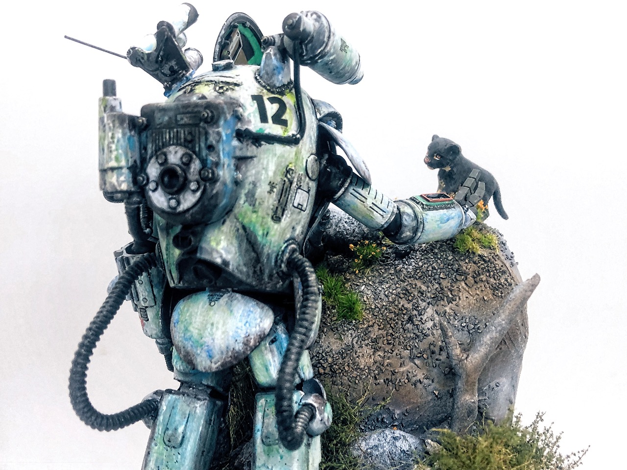 황폐화 된 지구에서 정찰중이던 용병군 병사가 고양이과 맹수의 새끼를 난생 처음 보는 장면을 묘사해 봤습니다.