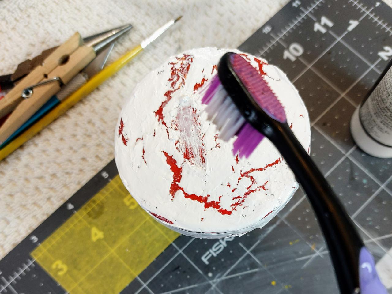 그 위에 크래킹 미디엄 역할을 할 공작용 풀 (Elmor's glue)를 넉넉히 발라줍니다.