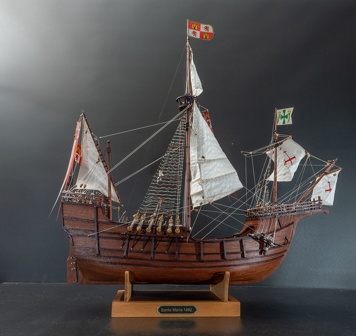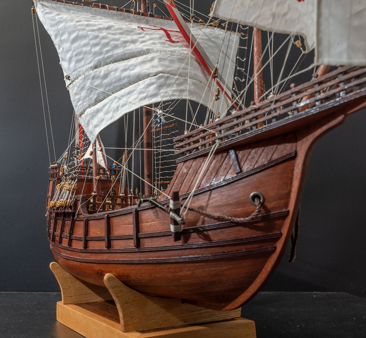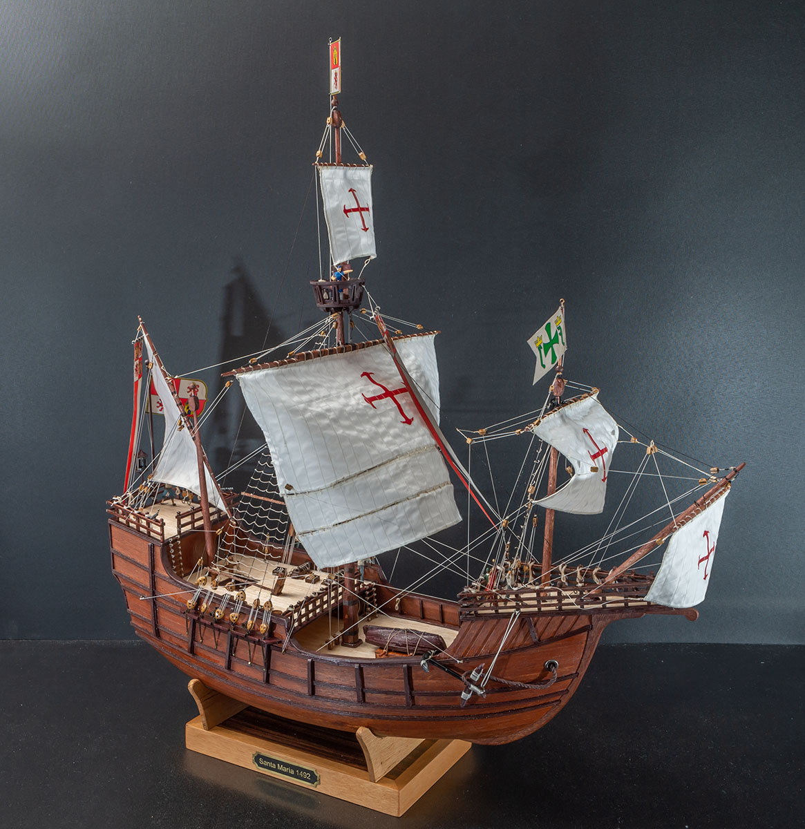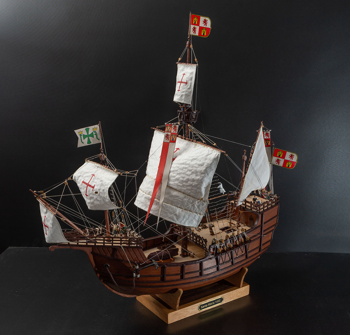 보통 알고 계시는 산타마리아와 조금 다를텐데, 남은 자료가 없어서 복원이 힘든 산타마리아는 당시 유행했던 나오 Nao 계열과 갈레온 Galleon 계열을 기반으로 레플리카를 만들고 있습니다. 여러분이 익히 보아온 프라모델 산타마리아는 갈레온 산타마리아이고, 저는 알테사니아의 나오 산타마리아 킷을 기반으로 2017년도에 만들어진 가장 최근의 레플리카 선박을 참고하여 디테일업을 했습니다. 따라서 선체 외양부터 리깅까지 많이 다를 겁니다.