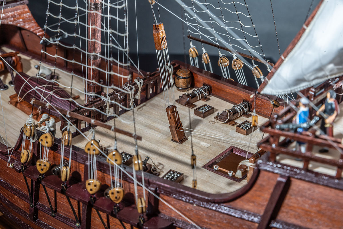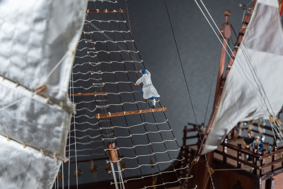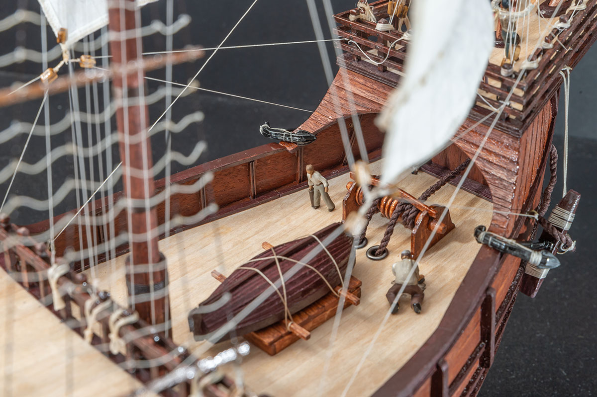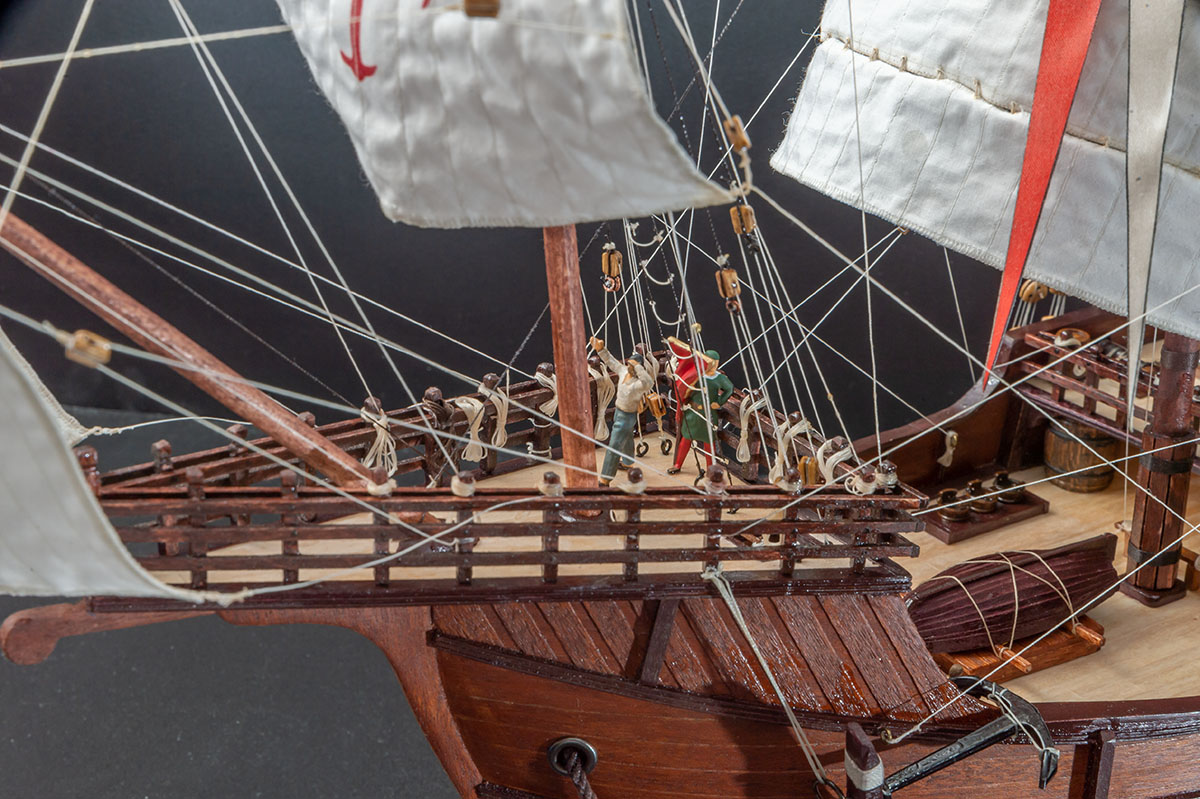 보통 알고 계시는 산타마리아와 조금 다를텐데, 남은 자료가 없어서 복원이 힘든 산타마리아는 당시 유행했던 나오 Nao 계열과 갈레온 Galleon 계열을 기반으로 레플리카를 만들고 있습니다. 여러분이 익히 보아온 프라모델 산타마리아는 갈레온 산타마리아이고, 저는 알테사니아의 나오 산타마리아 킷을 기반으로 2017년도에 만들어진 가장 최근의 레플리카 선박을 참고하여 디테일업을 했습니다. 따라서 선체 외양부터 리깅까지 많이 다를 겁니다.