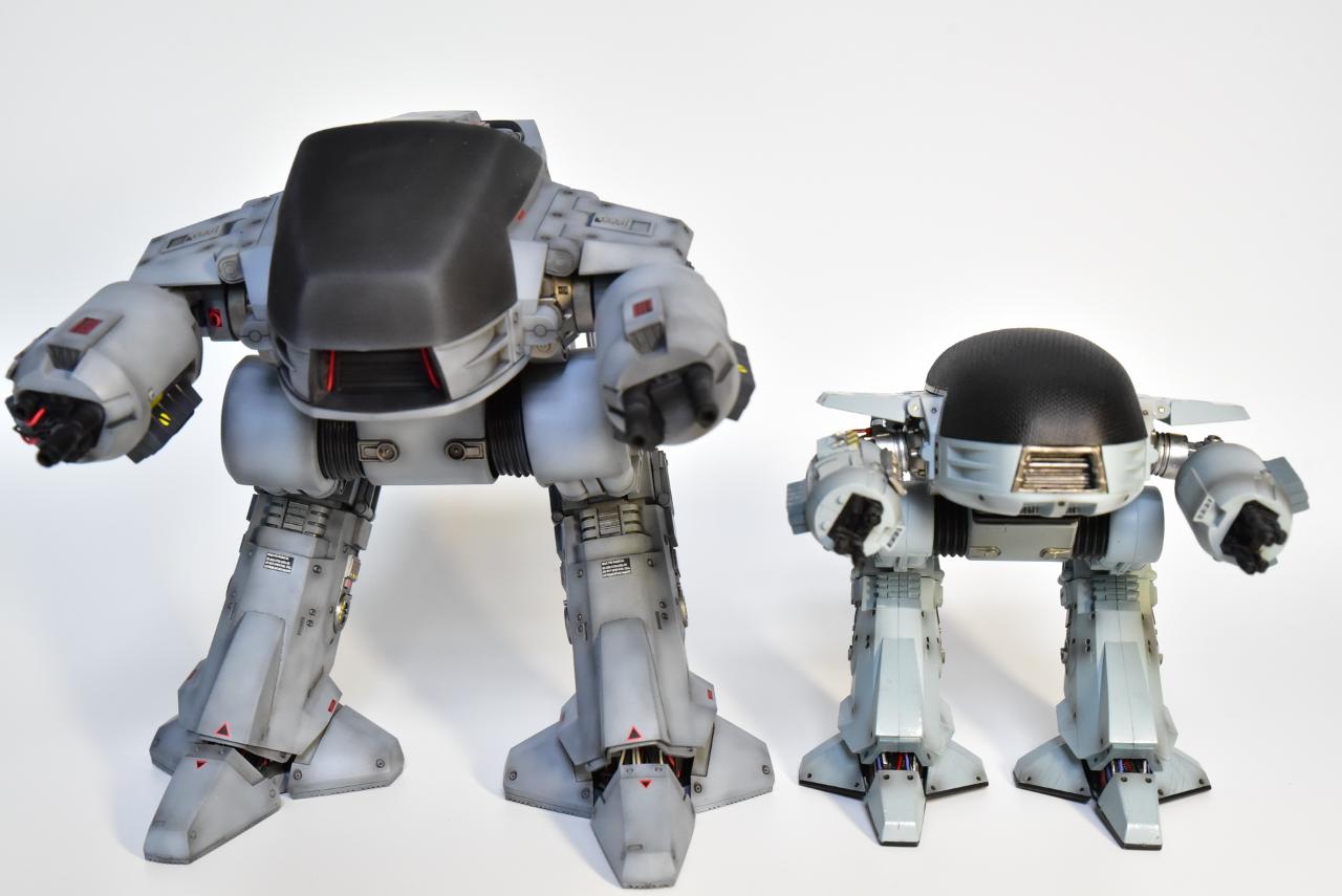 히야토이즈란 곳에서 발매된 1/18 ED-209 완제품과의 비교입니다. 너무나 허술한 디자인과 프로포션, 디테일 부족, 엉성한 도색 등 왠만하면 사지 마세요.^^