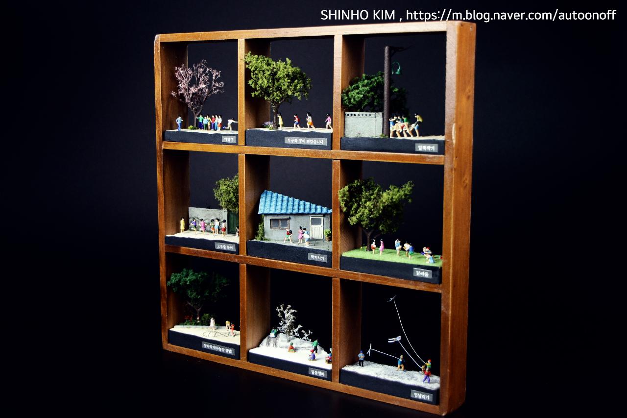 추억의 옛놀이 주제로 제작했던 9개의 작품을 한데 모아서 액자 형태로 완성본을 만들었습니다.