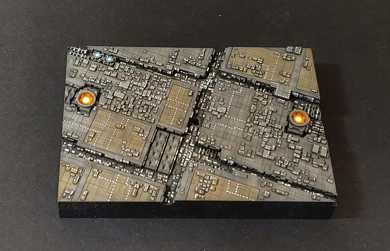 데스스타 표면을 생각하고 만들었는데, 색칠이 무슨 도심의 번화가 같습니다. 그냥 외딴별의 기계도시쯤으로 해두죠 뭐.