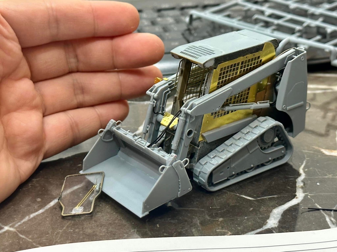 깨알같이 작은 부품 특히 전선같은 부분과 인테리어 부분이 조금 어려웠고요 내부 인테리어 열심히 했는데 문을 붙여버리게 되서 매우 아쉬웠습니다 이 작은 지게차에 데칼도 무지 많더군요