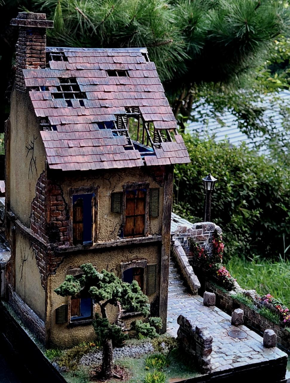 알리에서 구매한 목조 건물에 하드 웨더링해서 뒷골목의 습하고 칙칙한 모습 표현 할려고 노력해봅니다