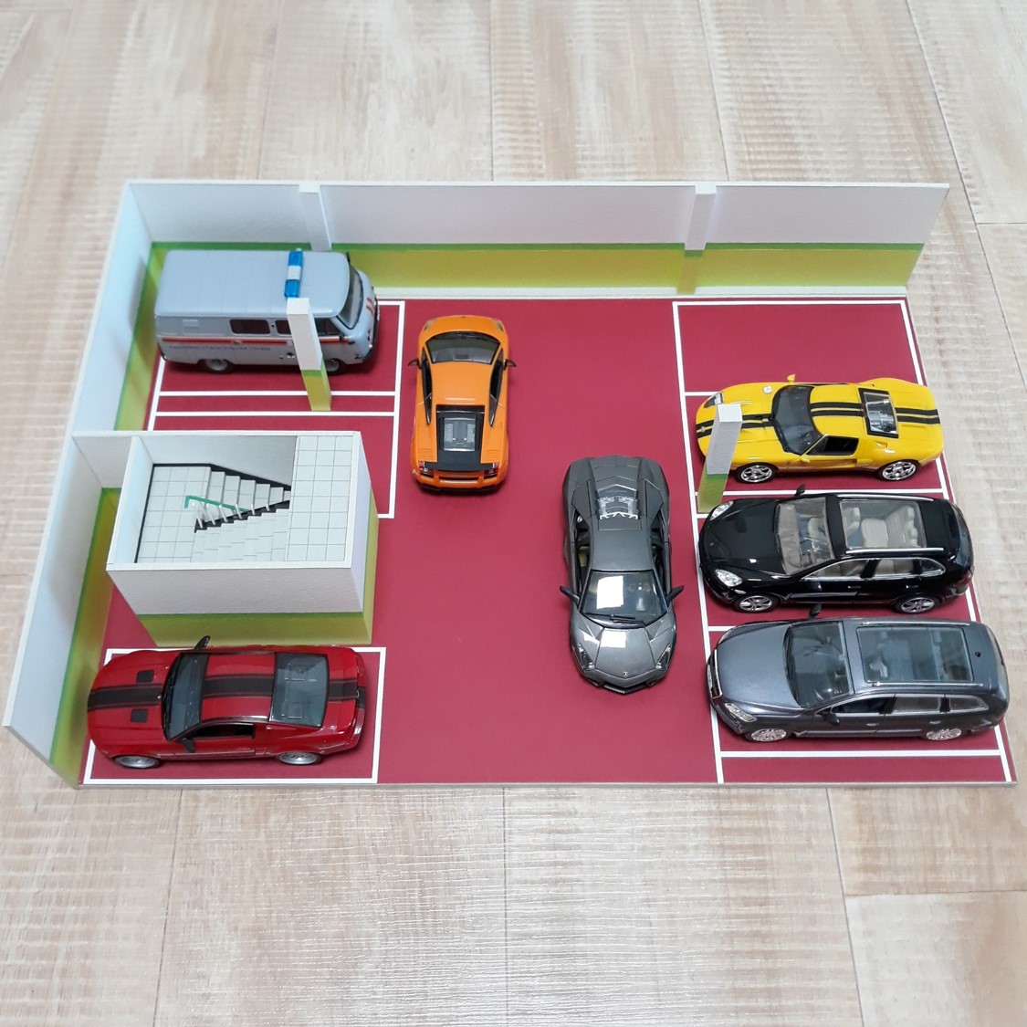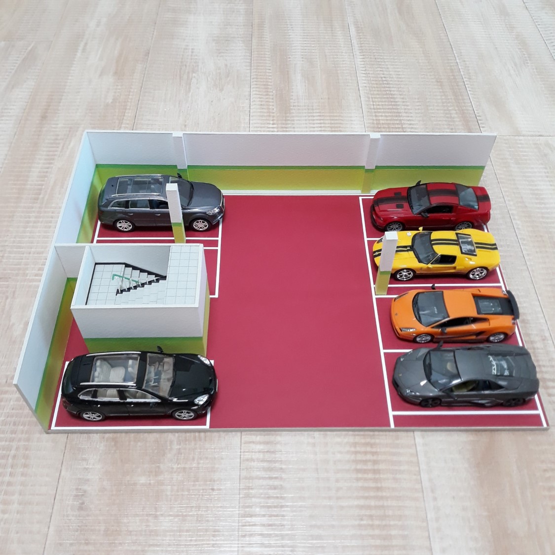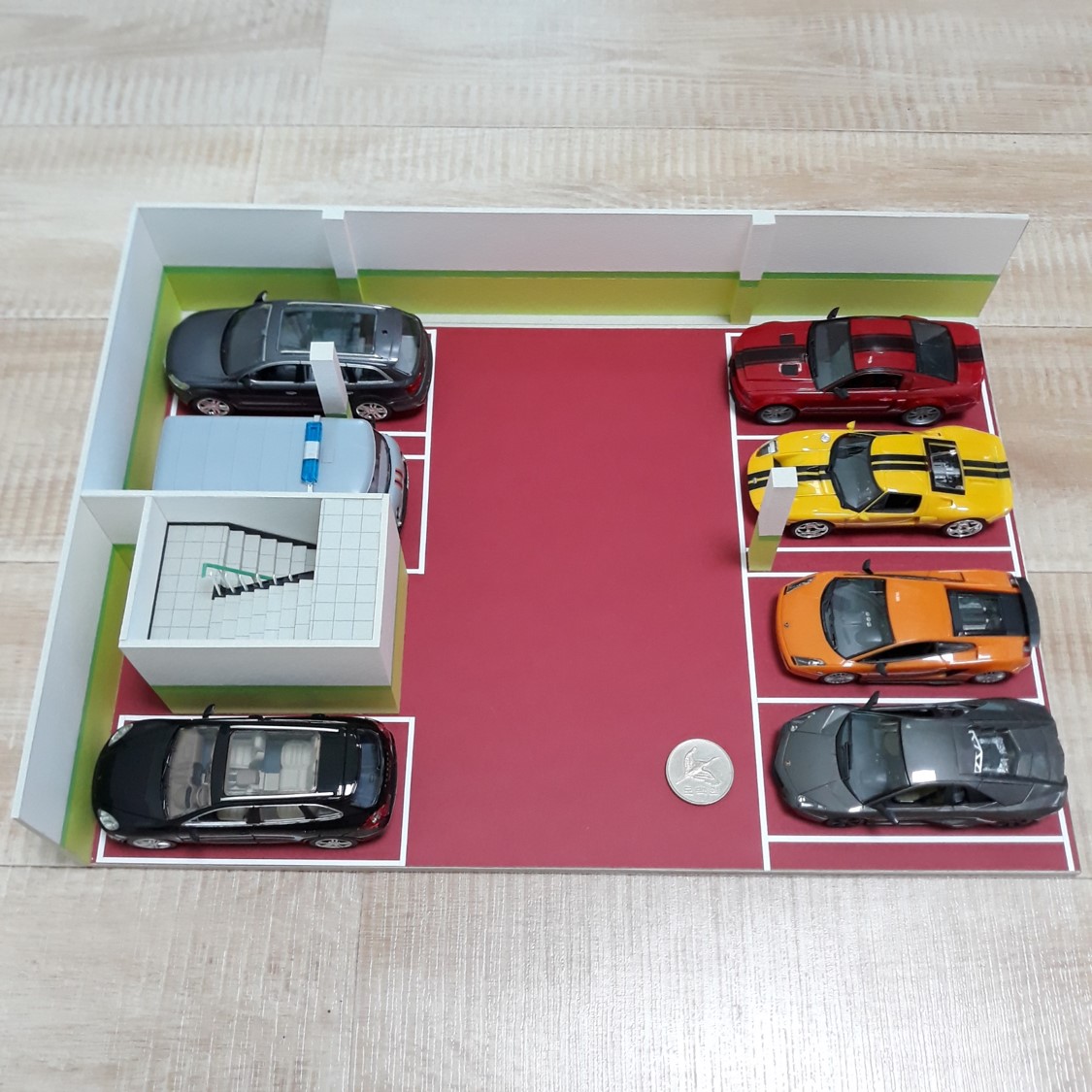 우리 동네 지하주차장을 만들었습니다. 재료는 종이 (매트보드와 머메이드)입니다. 오랫동안 구상만 하고 있다가 드디어 만들었습니다. 대략 2주 정도 걸린 것 같습니다.
