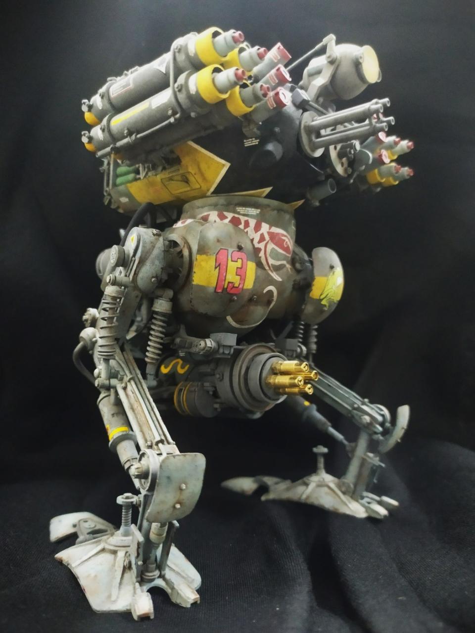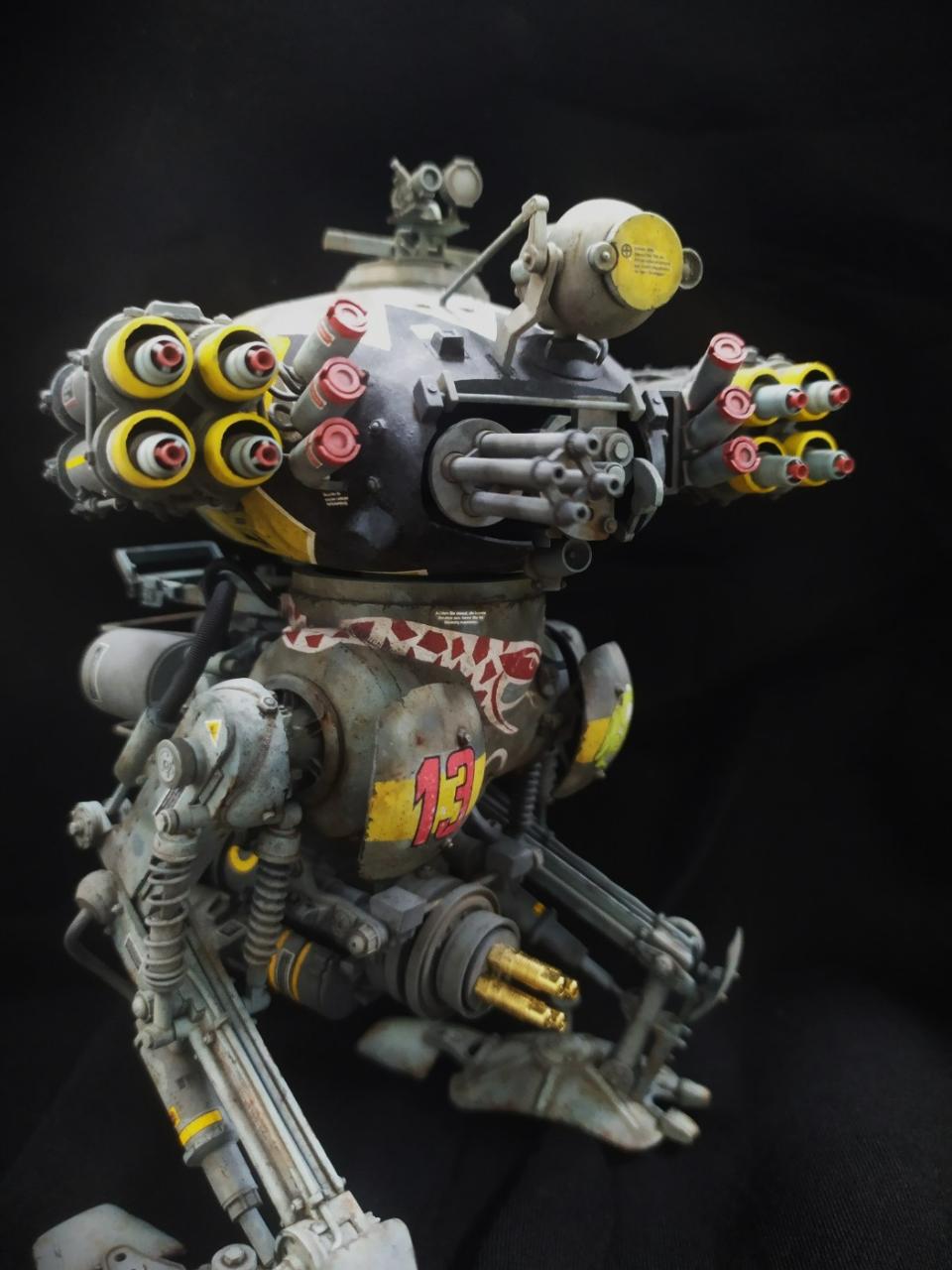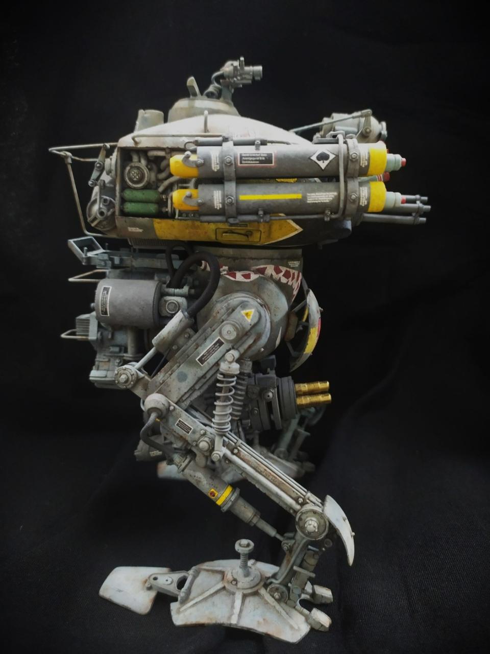 몸통 아래 4연발 레이저 기관총을 설치하여 포탑이 다른 곳을 공격하고 있어도 전면을 커버할 수 있다는 설정 - 중국제 4D프라모델 개틀링건의 몸체에 제도샤프 헤드 4개를 장착하여 표현했습니다.