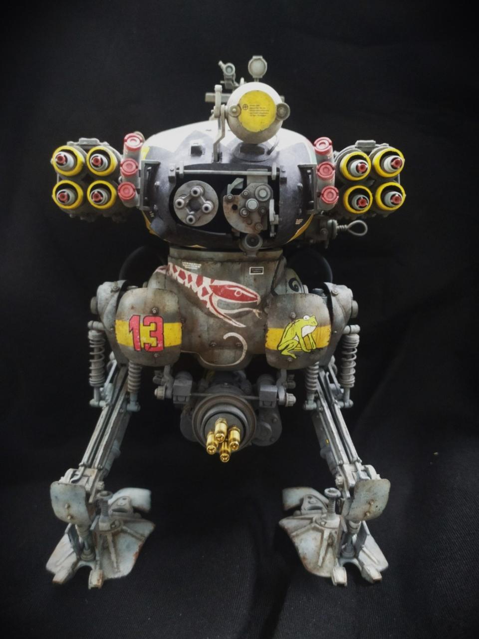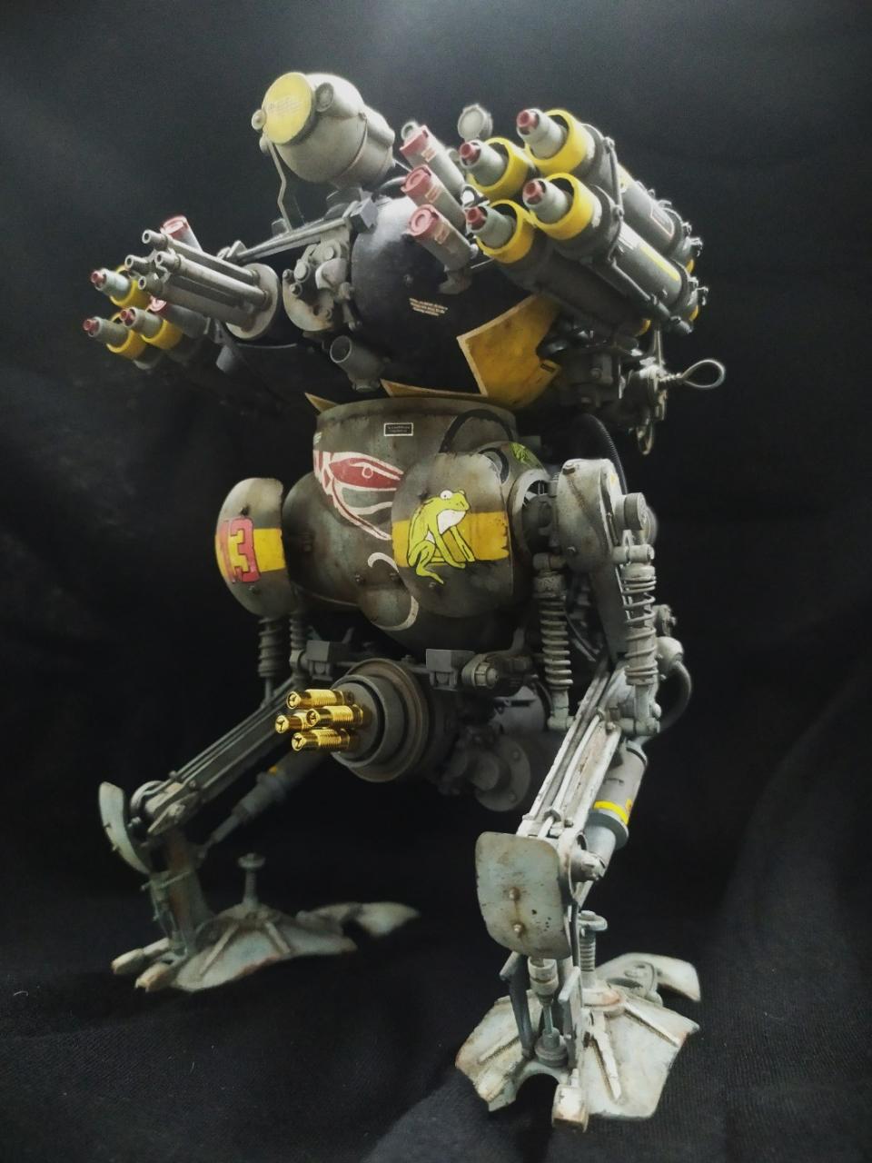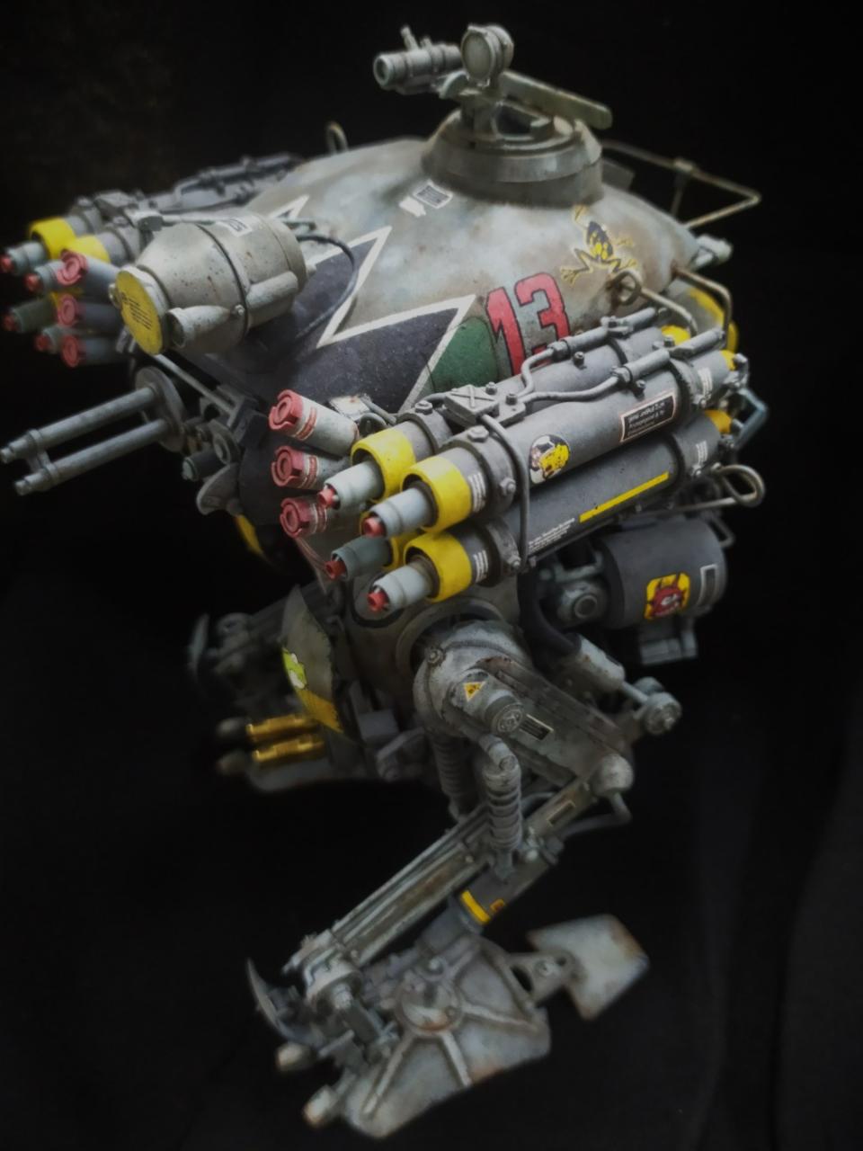 몸통 아래 4연발 레이저 기관총을 설치하여 포탑이 다른 곳을 공격하고 있어도 전면을 커버할 수 있다는 설정 - 중국제 4D프라모델 개틀링건의 몸체에 제도샤프 헤드 4개를 장착하여 표현했습니다.