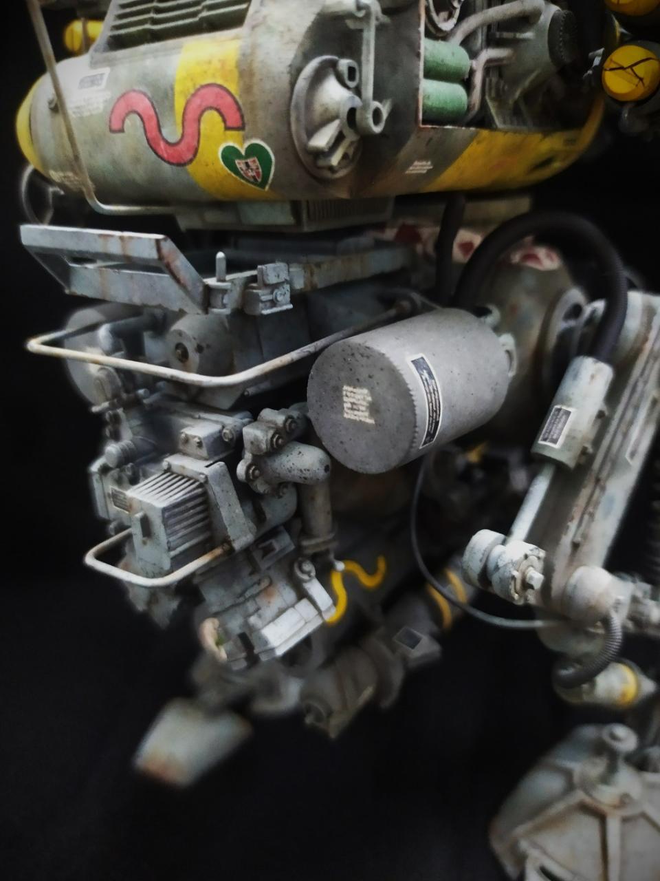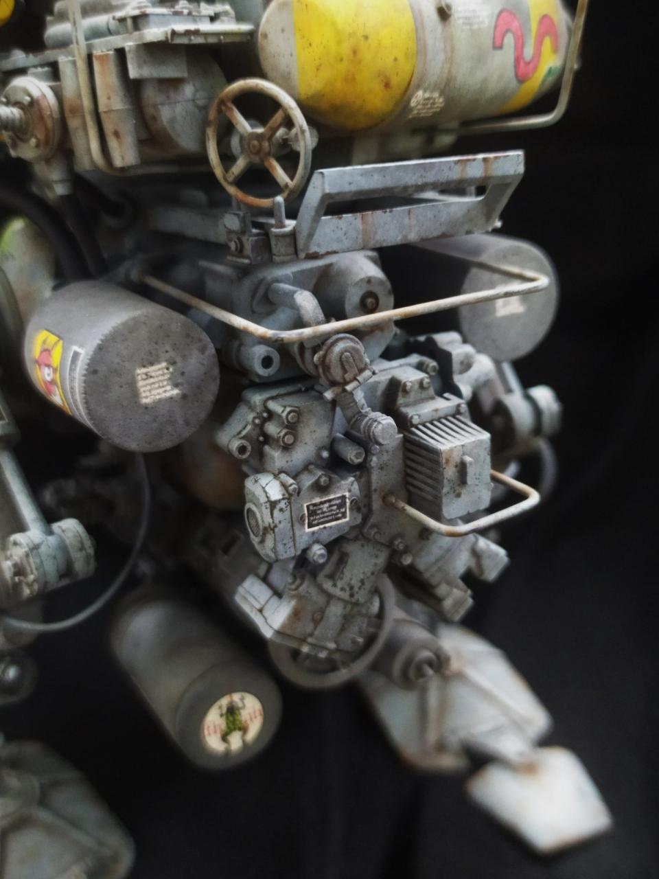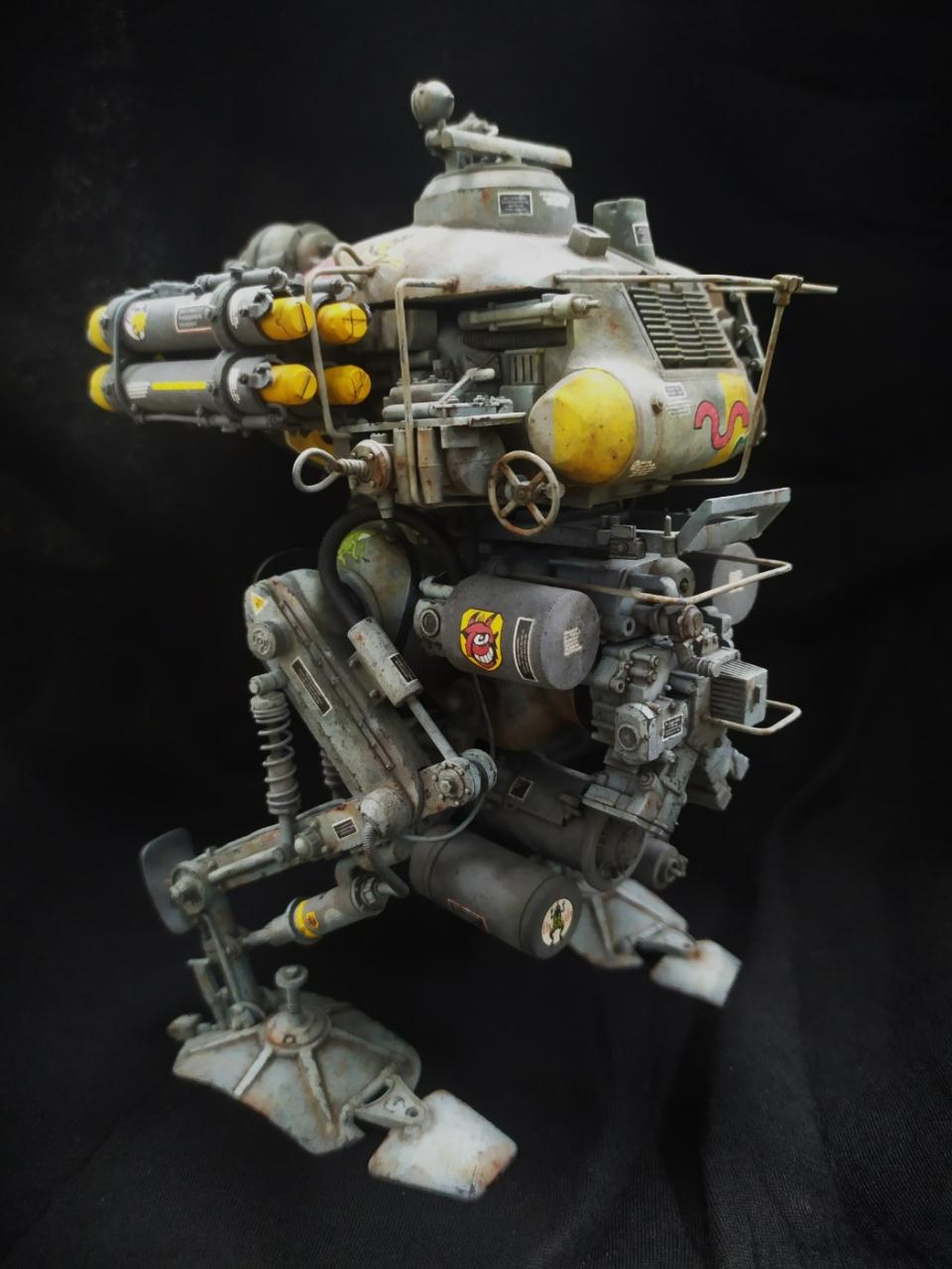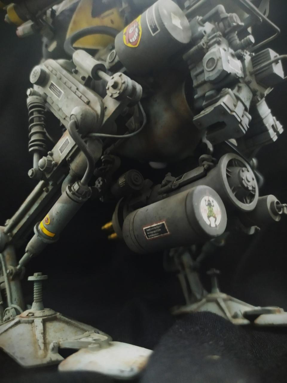 다리 하부에 유압식 실린더, 상부에 스프링 실린더를 추가하여 늘어난 하중을 견딘다는 설정 - 아카데미사의 판터, 브레들리 등의 AFV를 만들고 남은 잉여부품으로 제작했습니다.