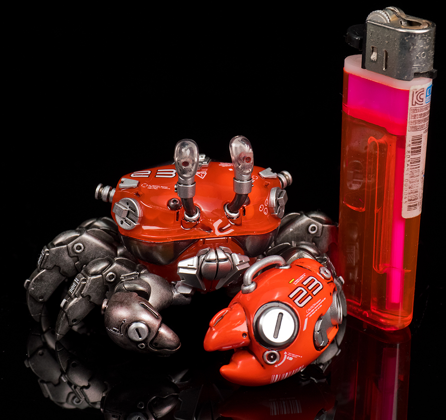 집게발이 얼굴과 입을 대부분 가리고 있어서 약간 앞쪽으로 위치를 조정해 줬습니다.