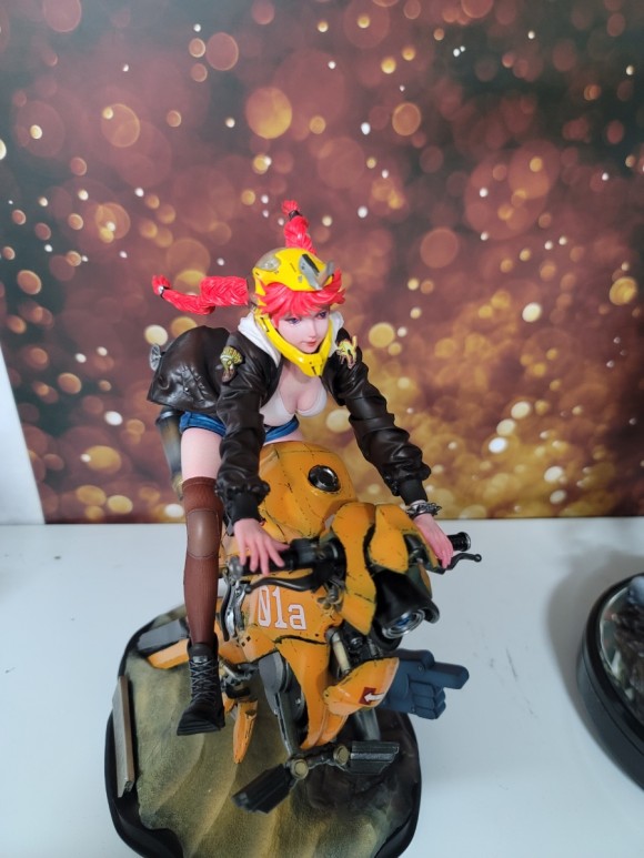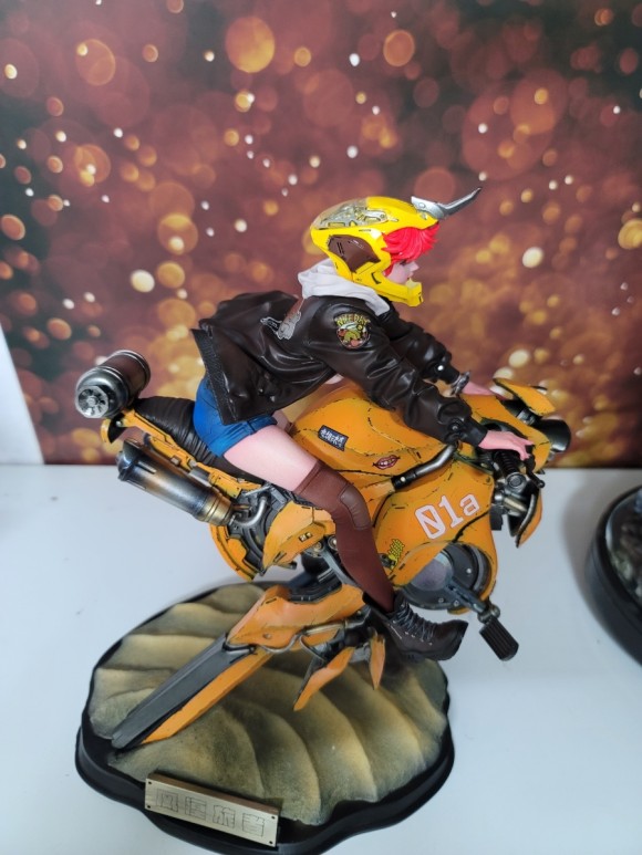라이더 여성의 동적인 표현 뿐아니라 바이크 조형 또한 멋지죠