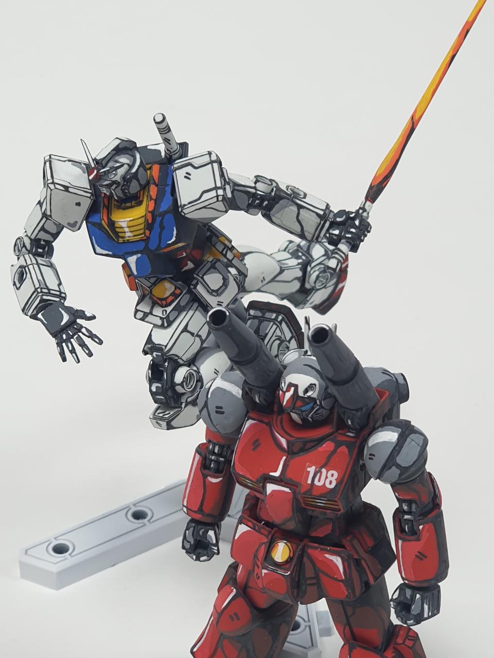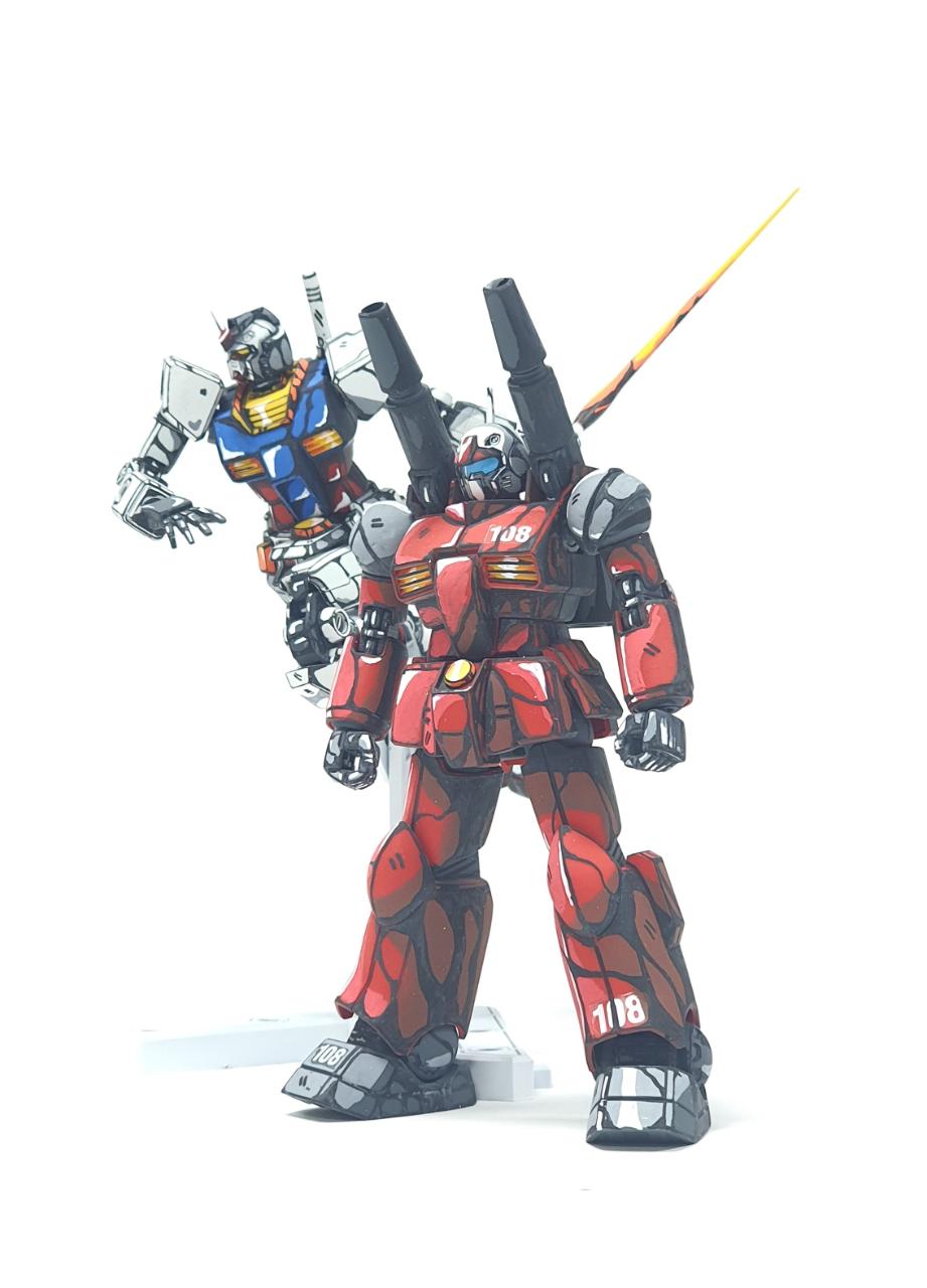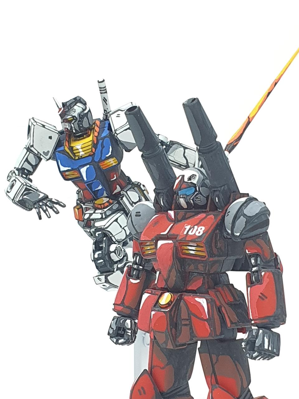 이번 작례는 HG 퍼스트 건담 및 건캐논을 애니매이션 도색으로 해보았습니다.